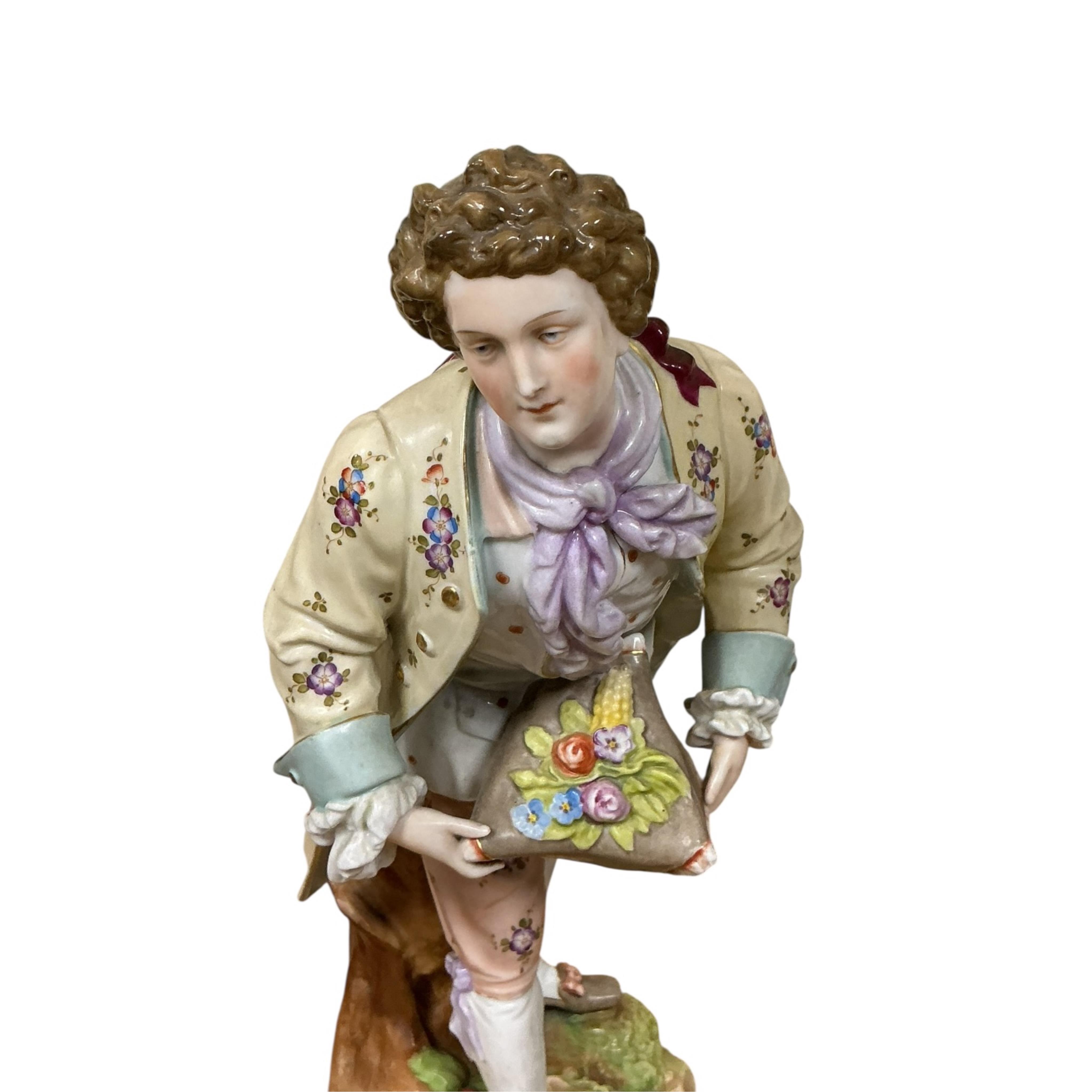 A pair of large Volkstedt porcelain figures, gallant and female companion, 40cm