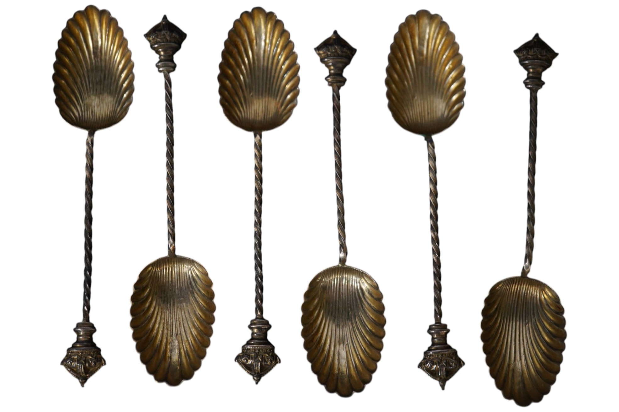 Lot 3828 , Four cased sets of silver flatware, including two sets of six teaspoons, one by William Devonport, Birmingham, 1896, a set of four silver coffee spoons with card suite terminals, Marson & Jones, Birmingham, 1933 and a se