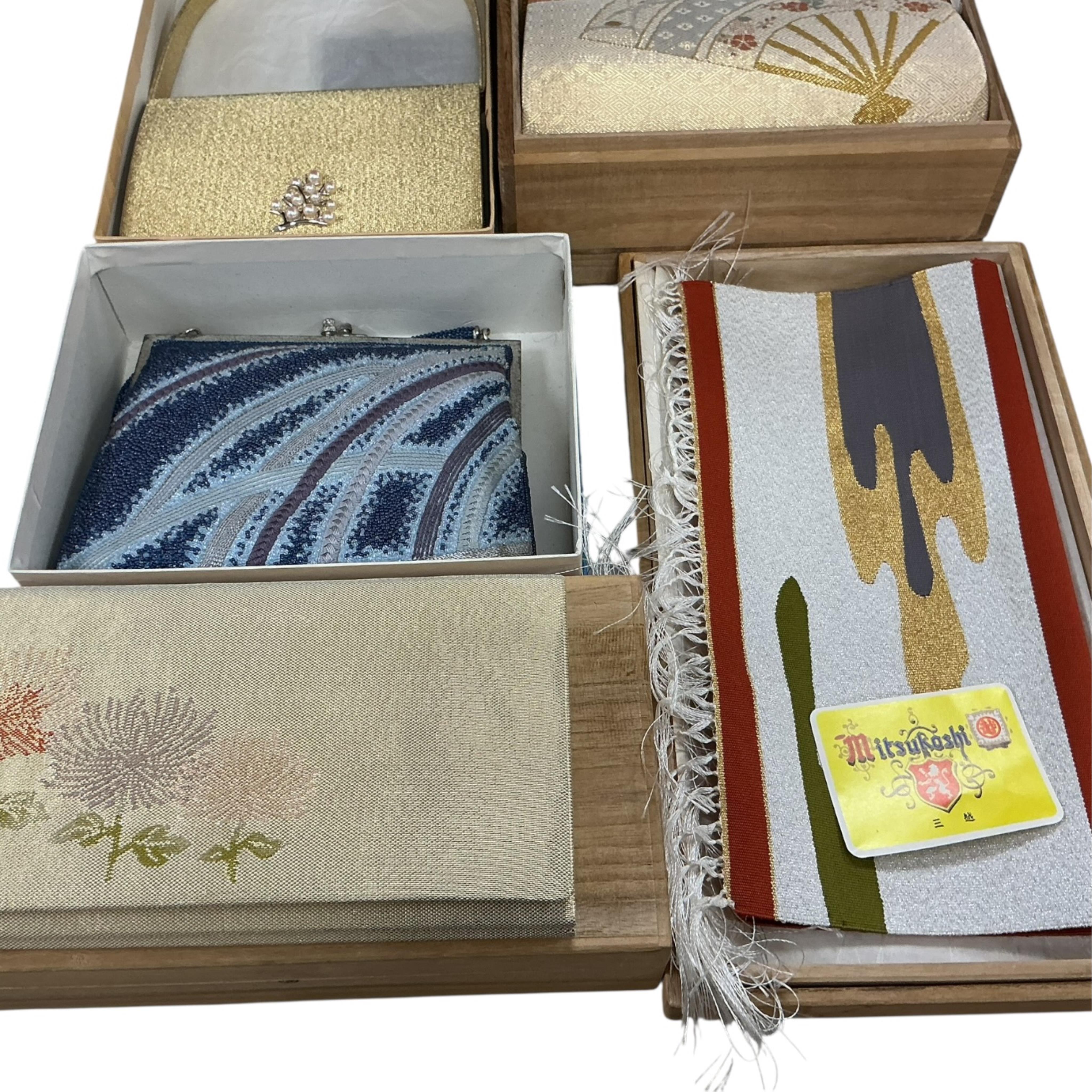 Lot 1301 , Five Japanese evening bags to include Mikimoto example with pearl clasp, together with a Fingernail Tapestry