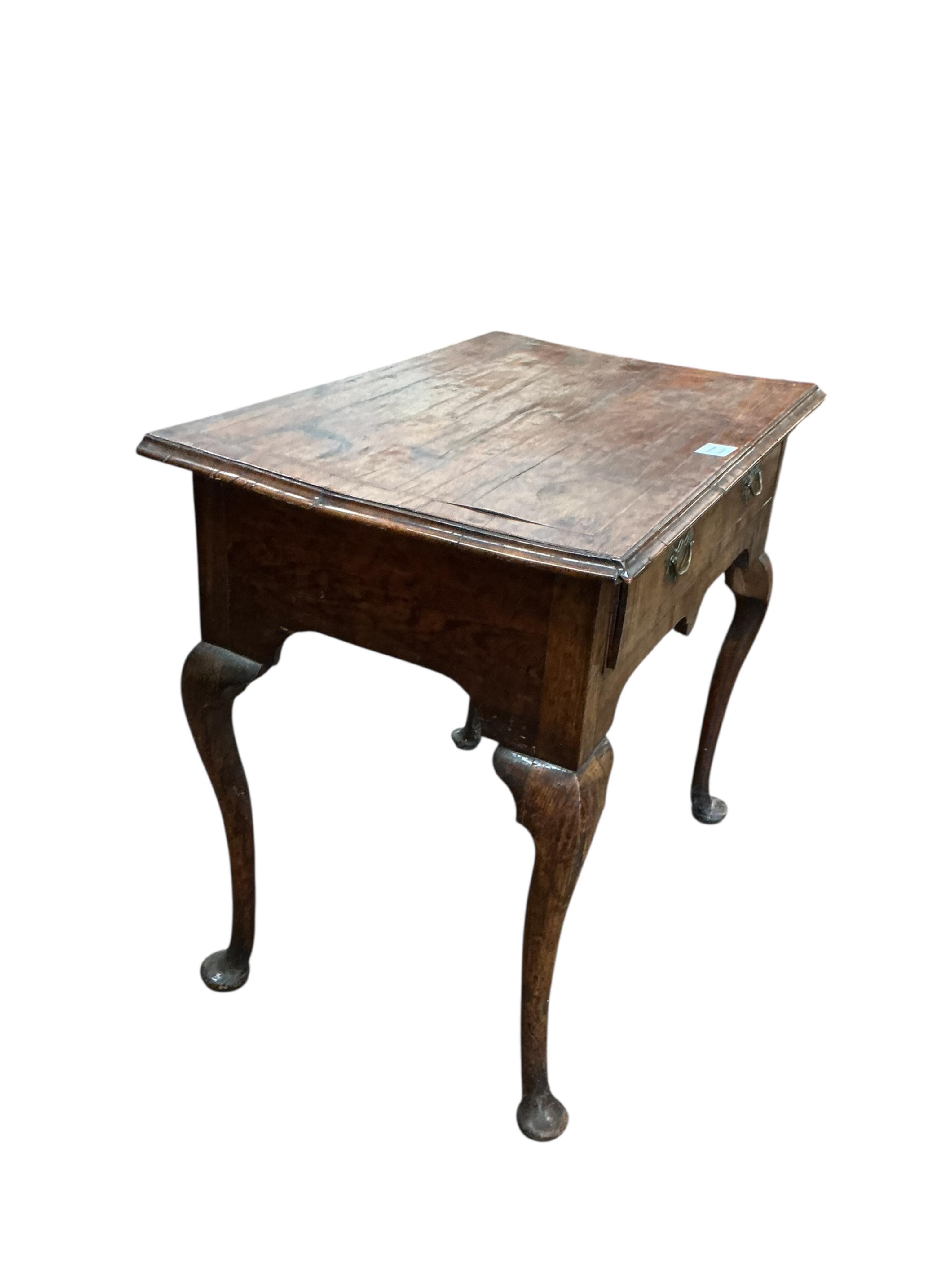 Lot 1096 , An early 18th century walnut side table with marginal inlay, fitted drawer with brass loop handles, on cabriole legs, width 76cm, depth 50cm, height 69cm