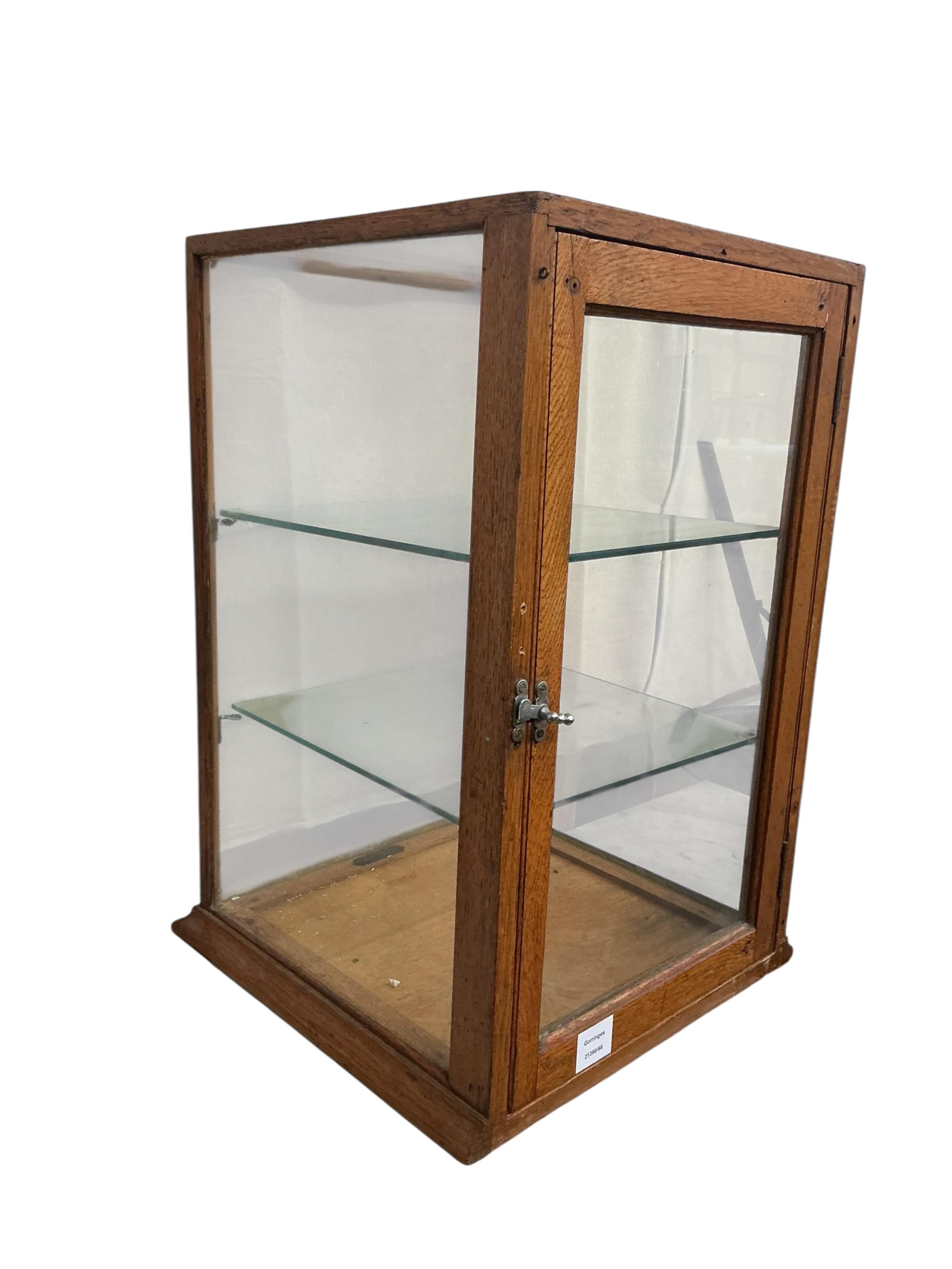 Lot 3437 , An Edwardian oak and glazed table top shop display cabinet, width 42cm, depth 40cm, height 61cm