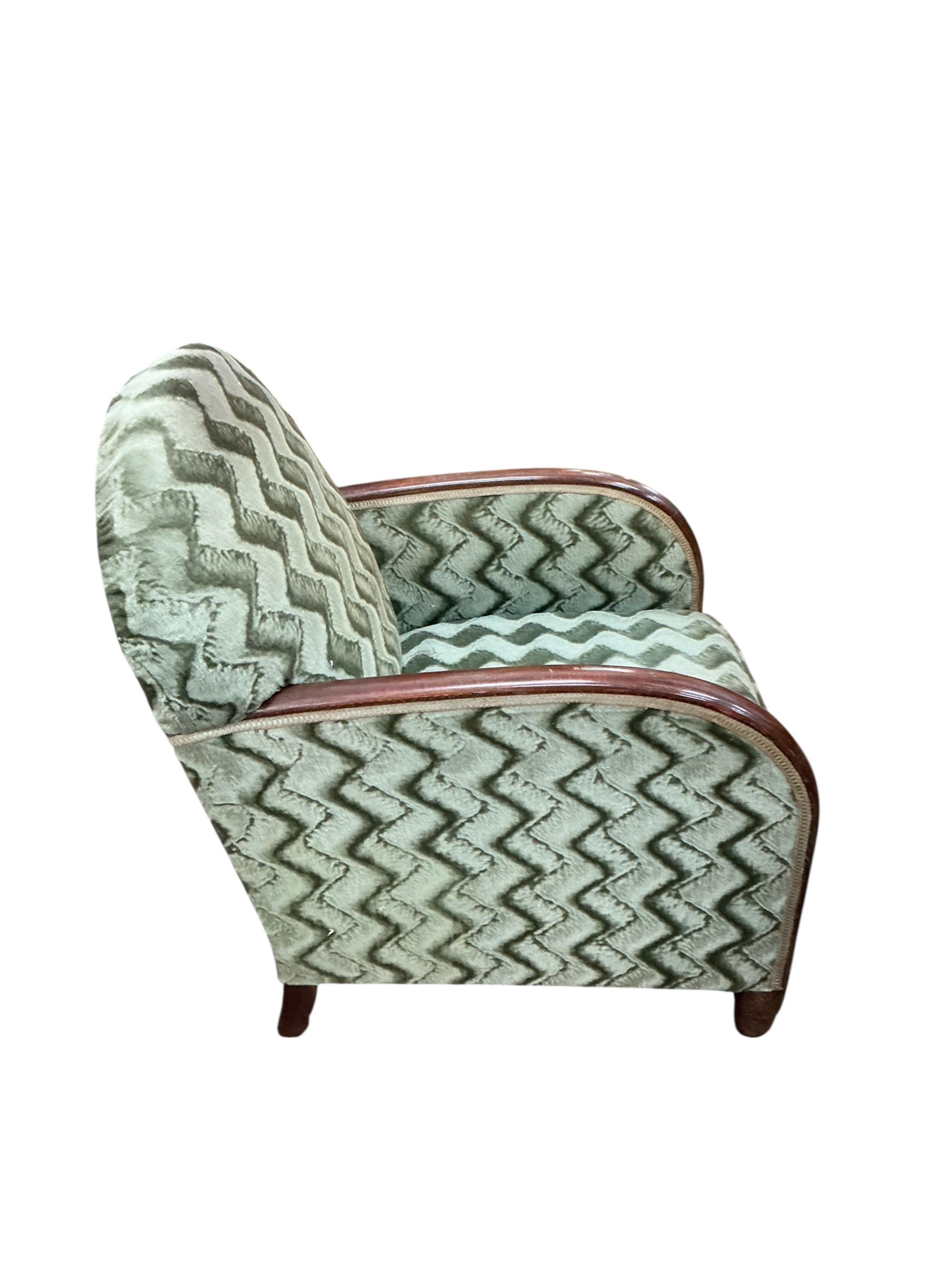 A pair of French Art Deco beech armchairs, width 61cm, depth 65cm, height 80cm