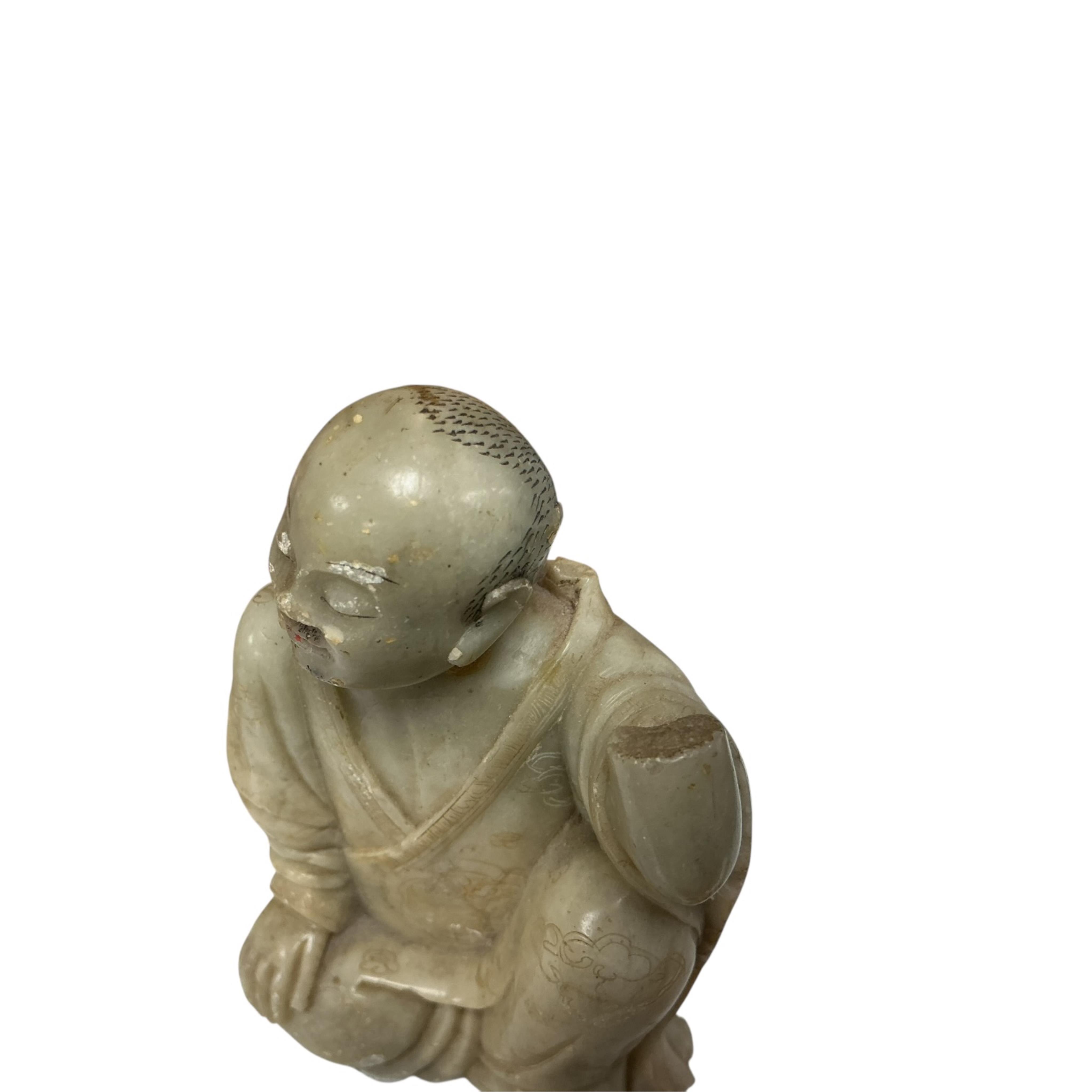 Lot 1384 , 18th century and later. Three Chinese soapstone carvings, largest 12cm high & 25cm wide.