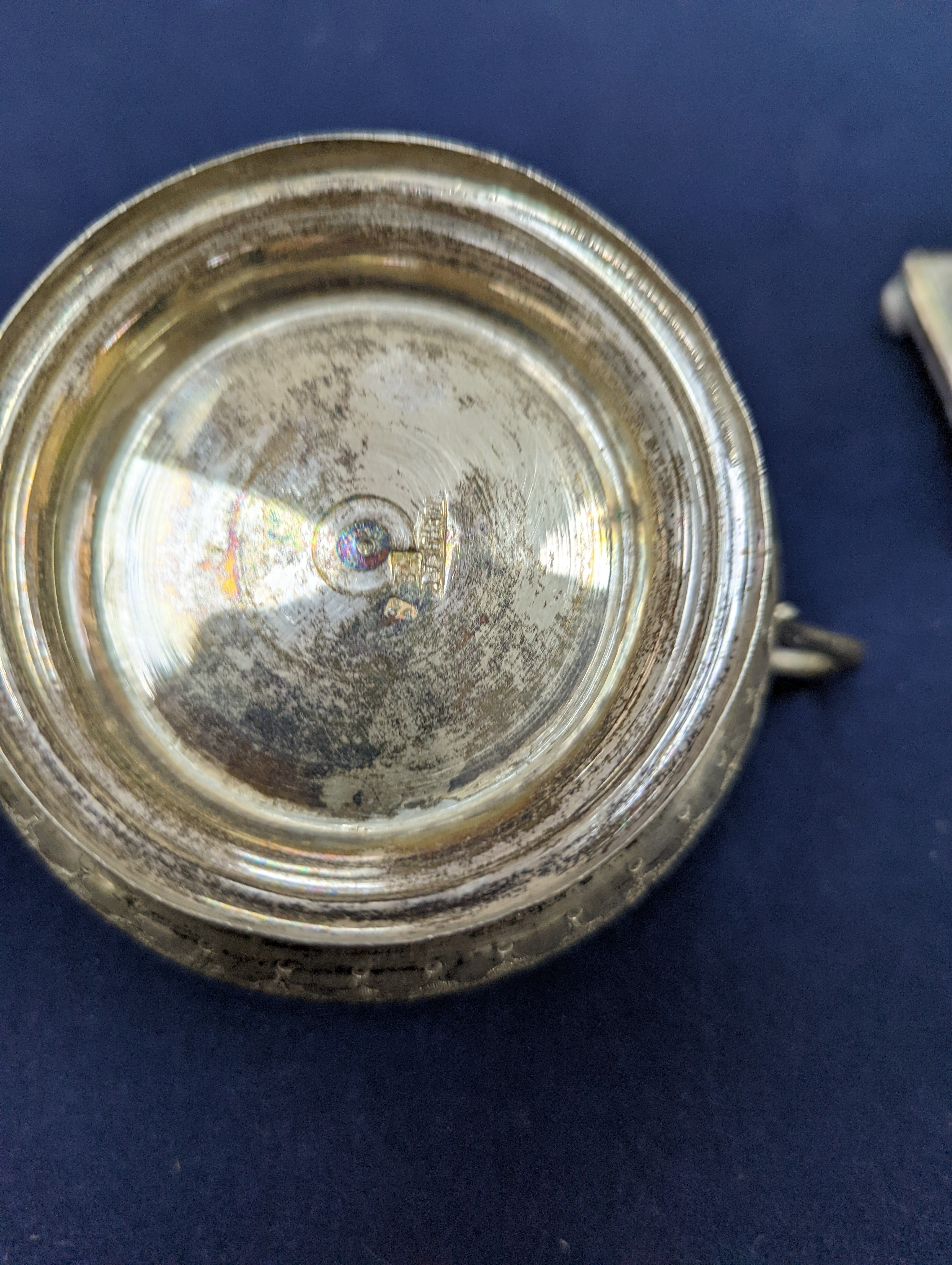 Lot 827 , A set of six Persian embossed 84 standard white metal coffee cup holders and matching sugar bowl and cover by Vartan and four other Persian white metal items.