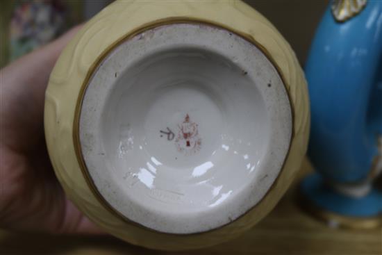 Two Christopher Dresser style ceramic cloisonne vases and a pair of Turntepliz Austrian vases