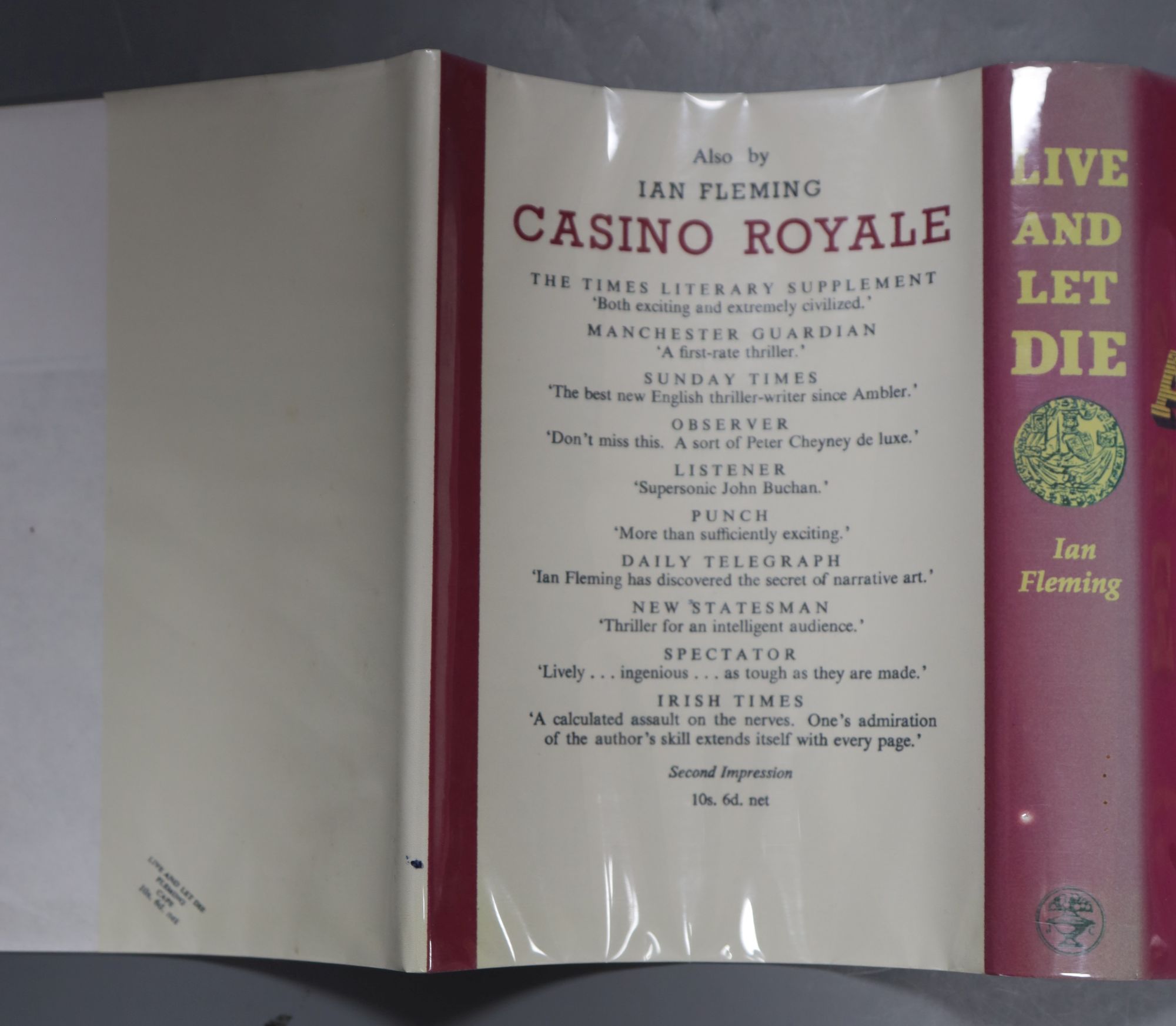 Lot 330 , Fleming, Ian - Live and Let Die, 2nd impression, d/wrapper, reproduction, 1954