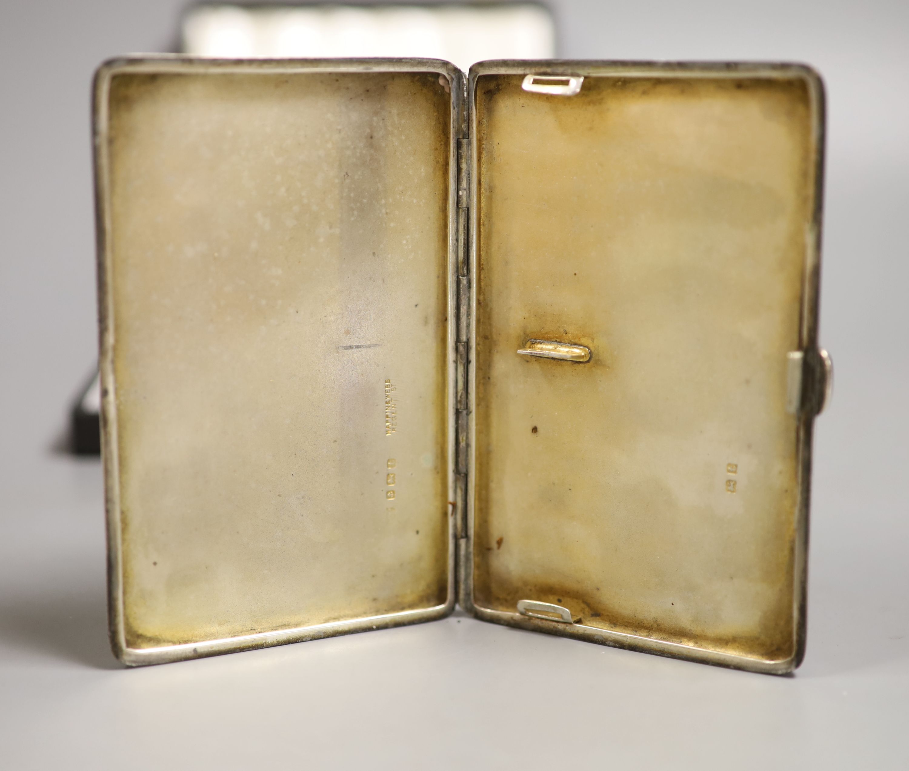 Lot 1706 , A George V silver cigarette case, 12.7 cm, a 900 standard white metal snuff box and five silver teaspoons..