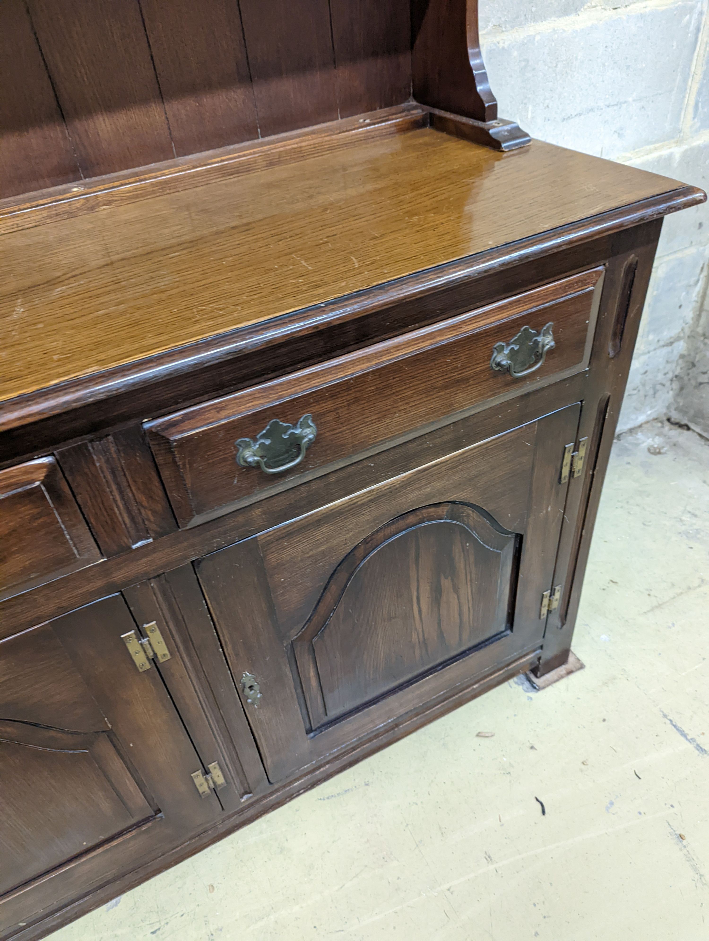 A Georgian style oak dresser base, W-184cm, D-46cm, H-188cm.