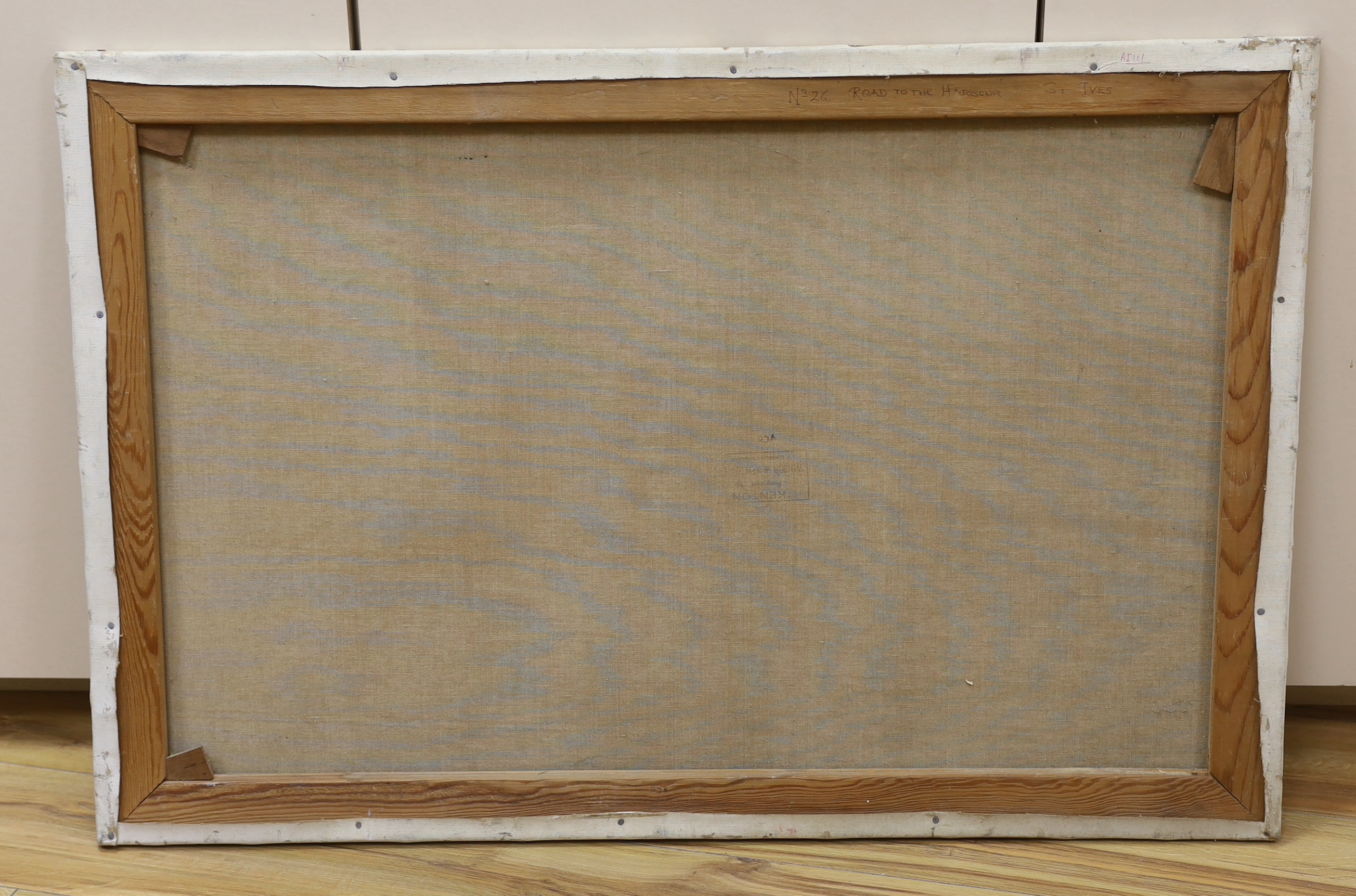 Jack R. Mould (1928-1998), impasto oil on canvas, Cottages before a harbour, signed, 90 x 60cm, unframed