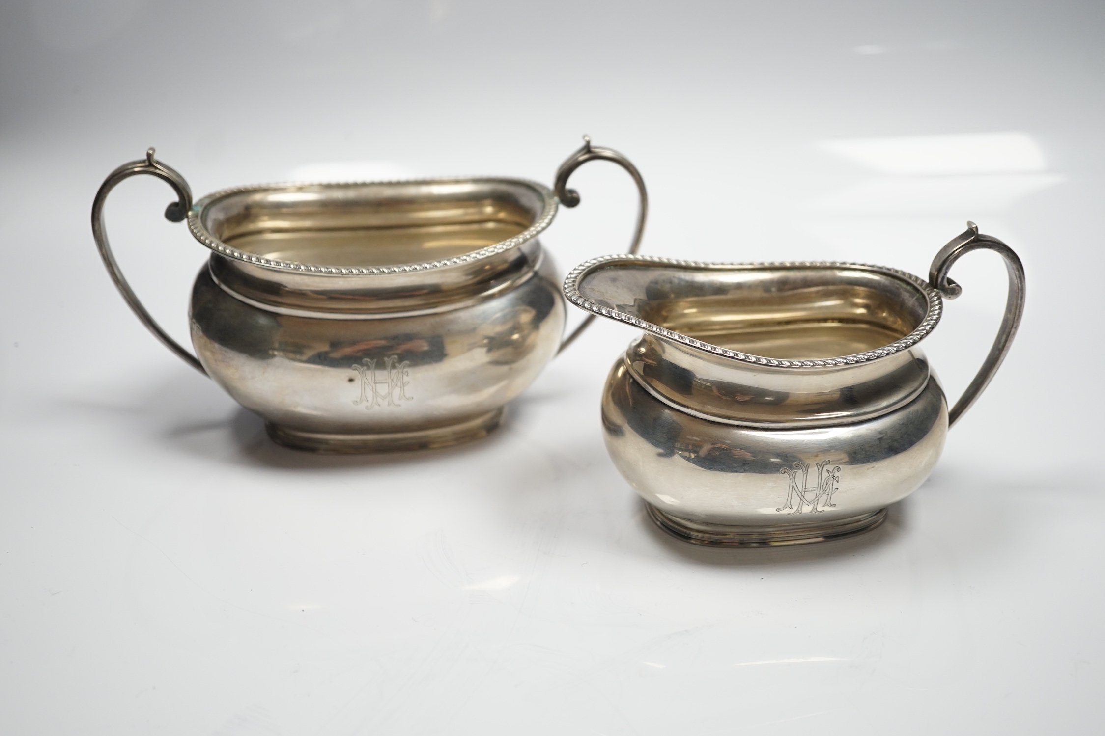 A George V silver oval cream jug and sugar bowl, Sebastian Garrard, London, 1927, 14.8oz.