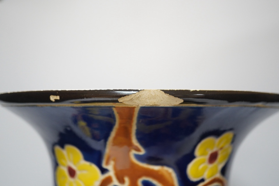 Lot 406 , A South East Asian polychrome pottery vase and a Staffordshire pottery greyhound pen holder, vase 53cm high. Condition - vase fair, pen holder marks to glazing