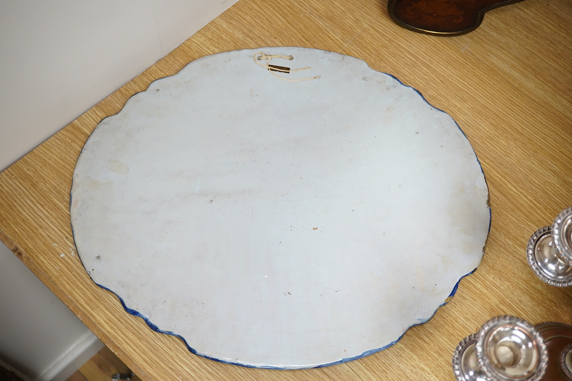 Lot 403 , A 19th century Dutch delt shaped oval plaque, 53cm wide. Condition - fair to good