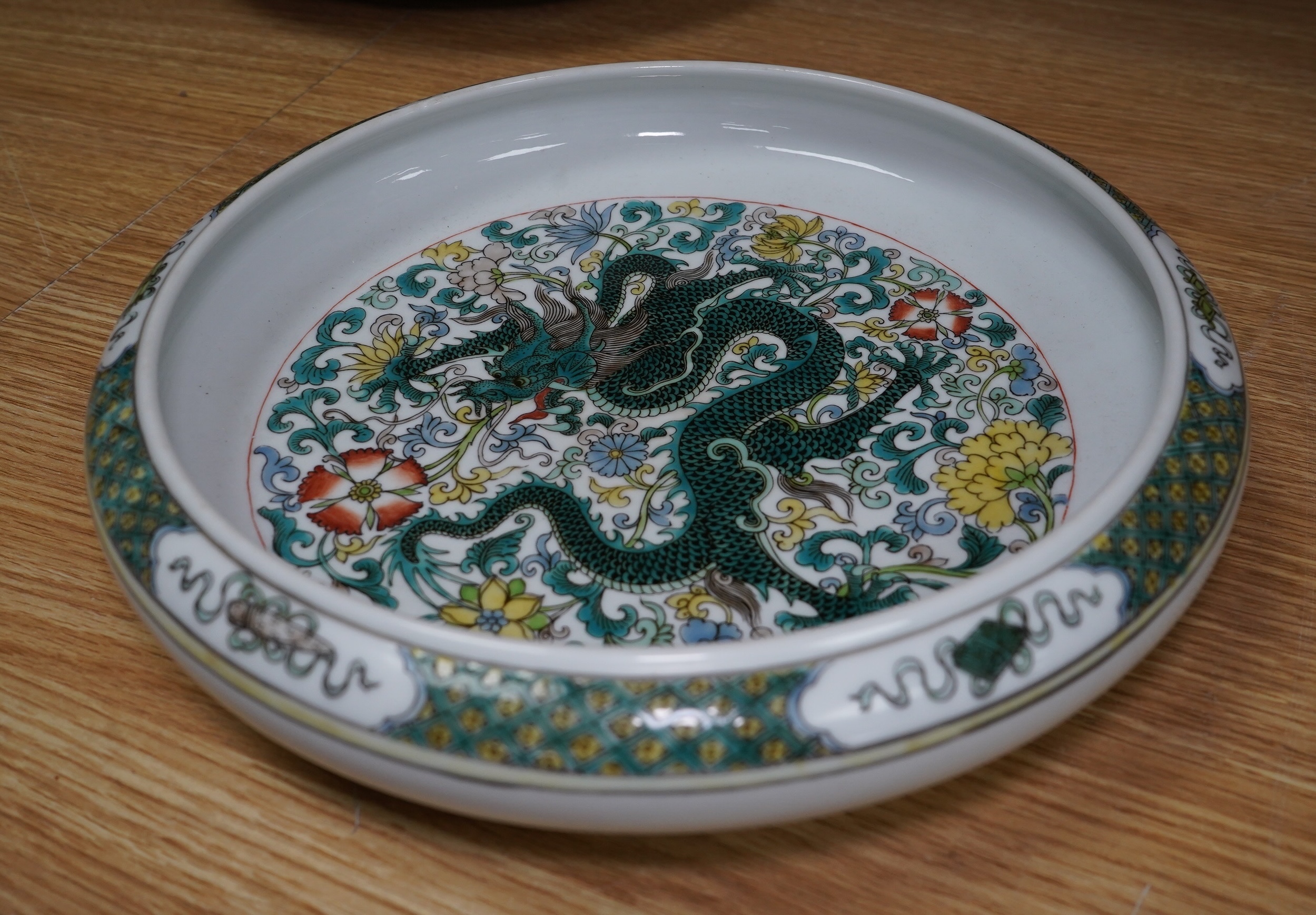 A Chinese famille verte dragon bowl, 29cm in diameter. Condition - good