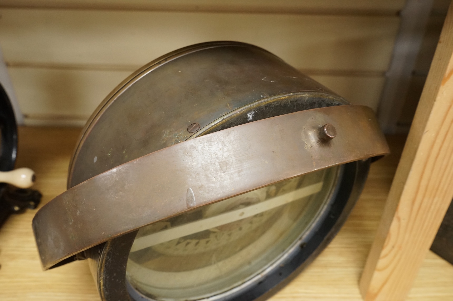Lot 257 , A gimballed brass cased ship's compass, by Kelvin & Hughes Ltd, 33cm diameter
