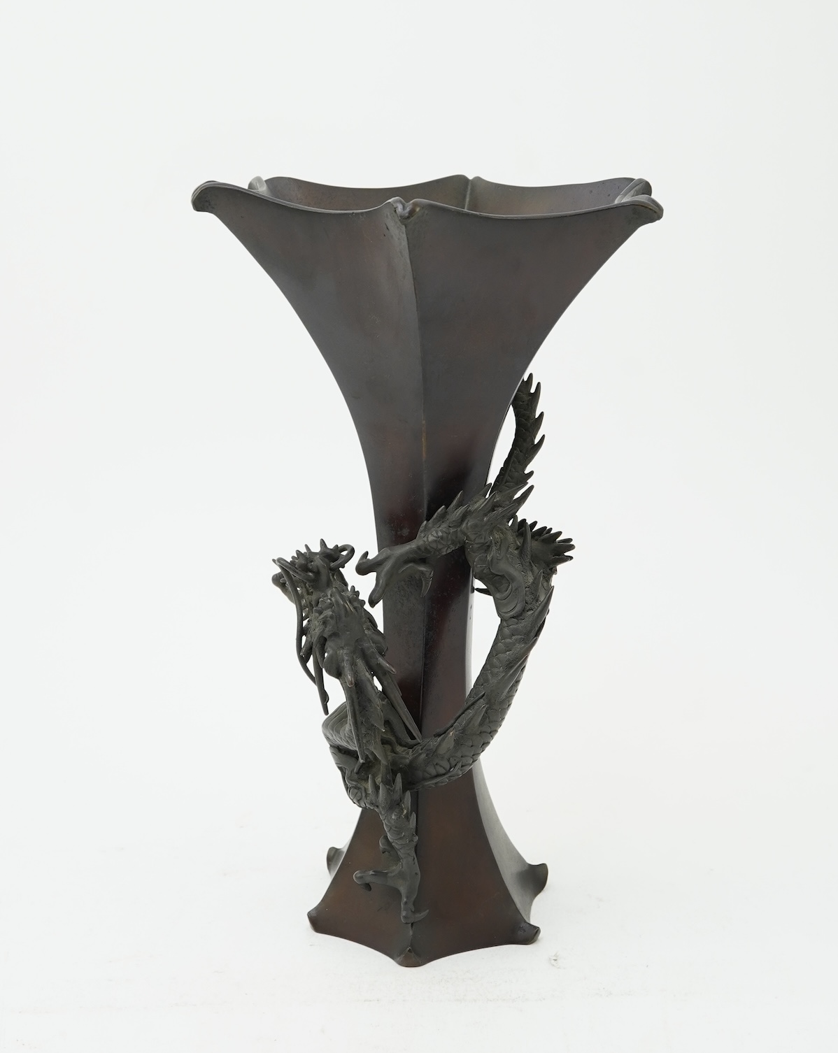 A Japanese bronze 'dragon' hexagonal beaker vase, Meiji period