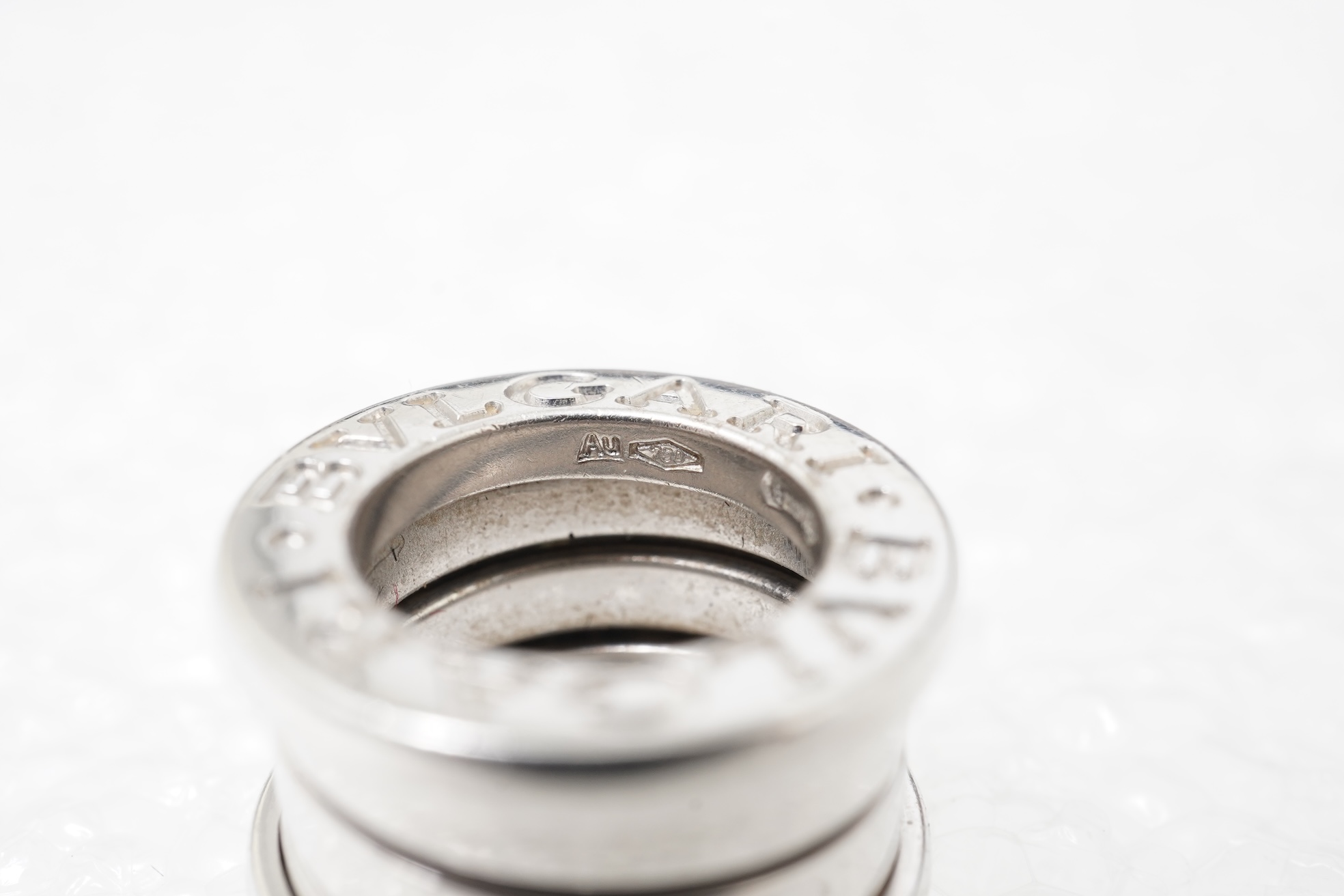 Bulgari, a 'B-Zero' pendant, designed as a partially sprung tube in white gold, diameter 1.5cm, signed BVLGARI twice to each end, Italian maker's marks, stamped Au750, numbered EV2M4K, gross weight approximately 7 grams
