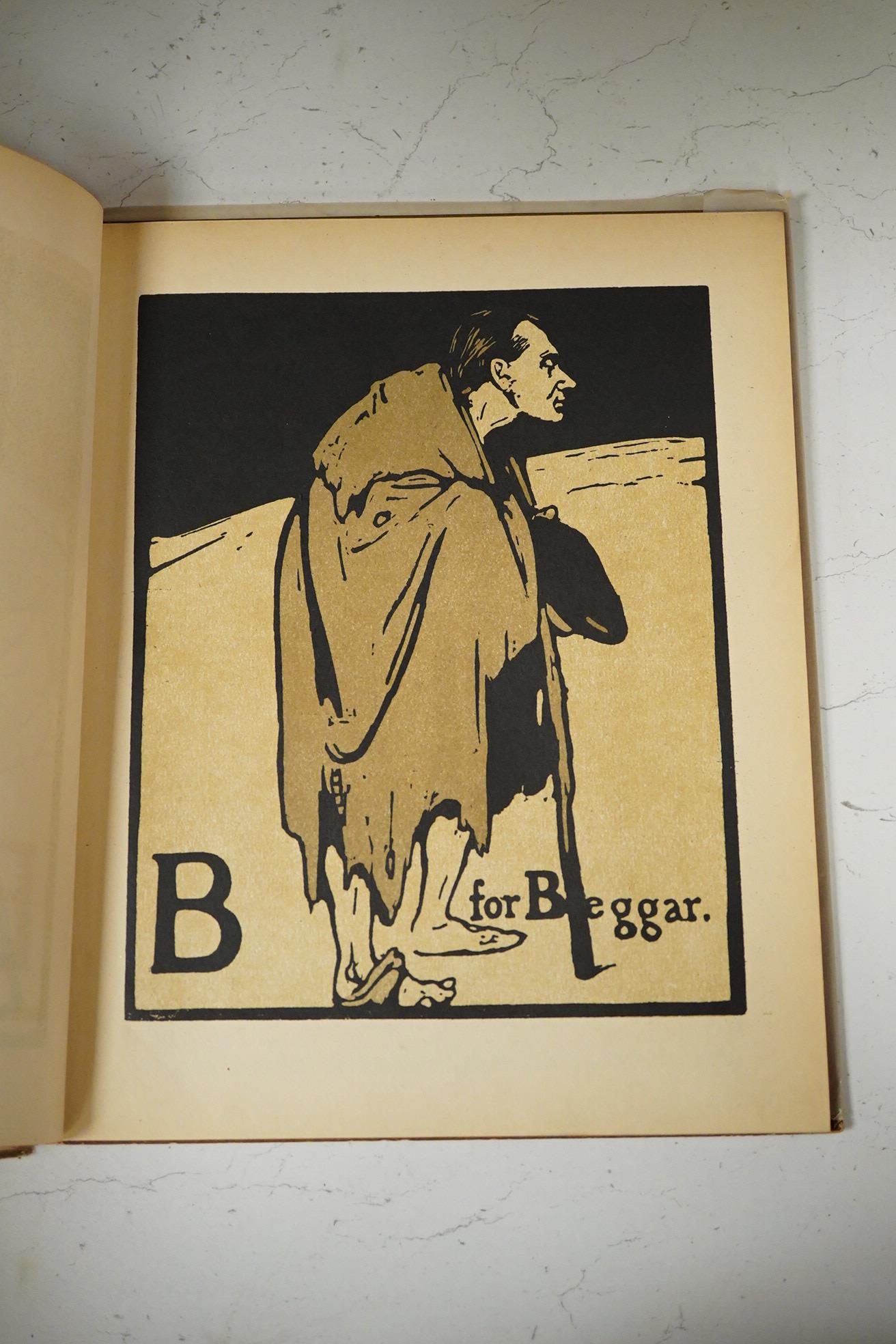 Lot 1273 , Nicholson, William - An Alphabet. 1st edition. coloured title device and 26 coloured lithographed plates, sports almanac slip tipped-in at end; original coloured pictorial boards, 4to. 1898