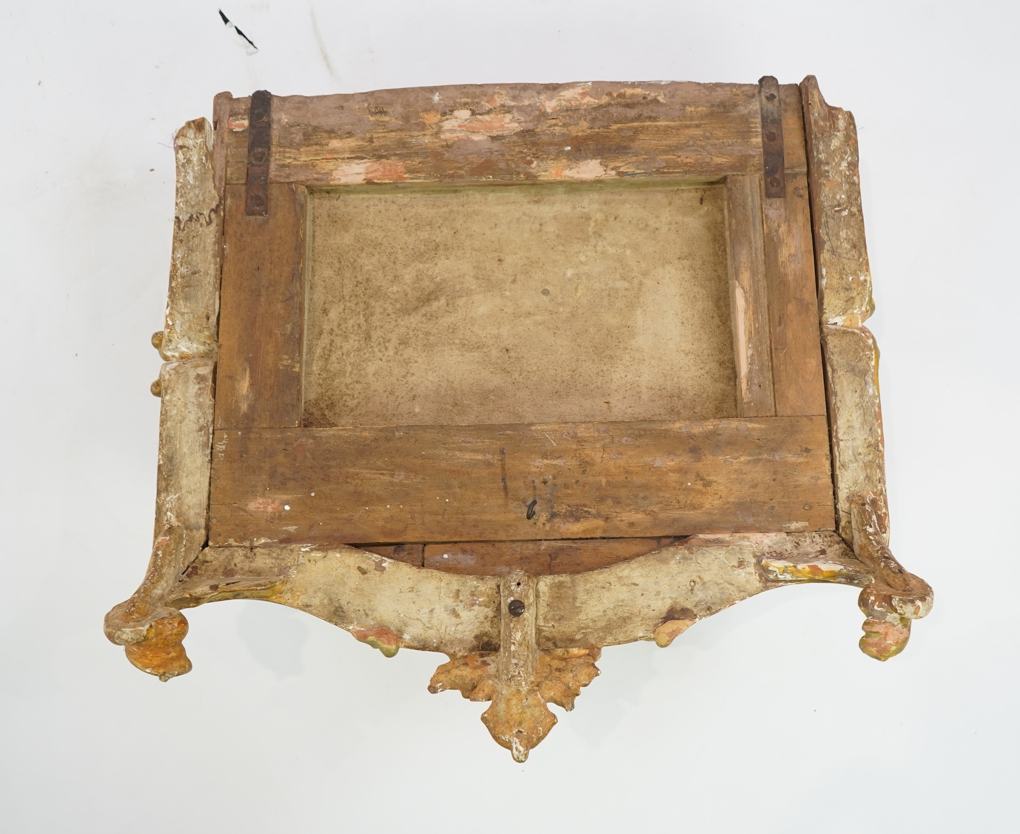An Italian gilt wood and cream painted canopy, 19th century, carved with swags and tassels the serpentine shaped frieze with scrolled leaves, approximately 69cm wide