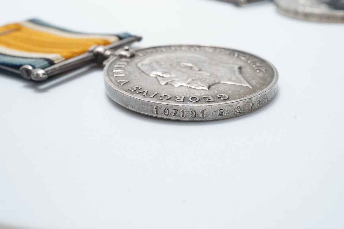 A Victoria and GV medal pair awarded to George S. Woolley, Boatman, H.M. Coast Guard, comprising of a Victoria Royal Naval Long Service and Good Conduct medal and a GV First World War 1914-1918 medal