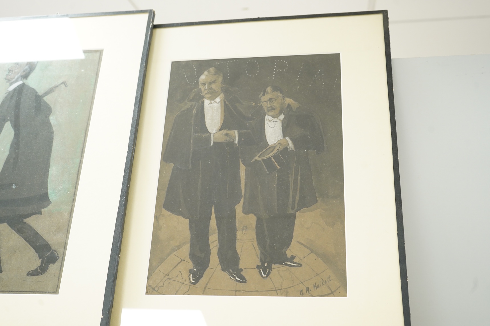 George Roland Halkett (1856-1918), Five original caricatures for Pall Mall magazine, each signed or initialled, largest 30 x 20cm
