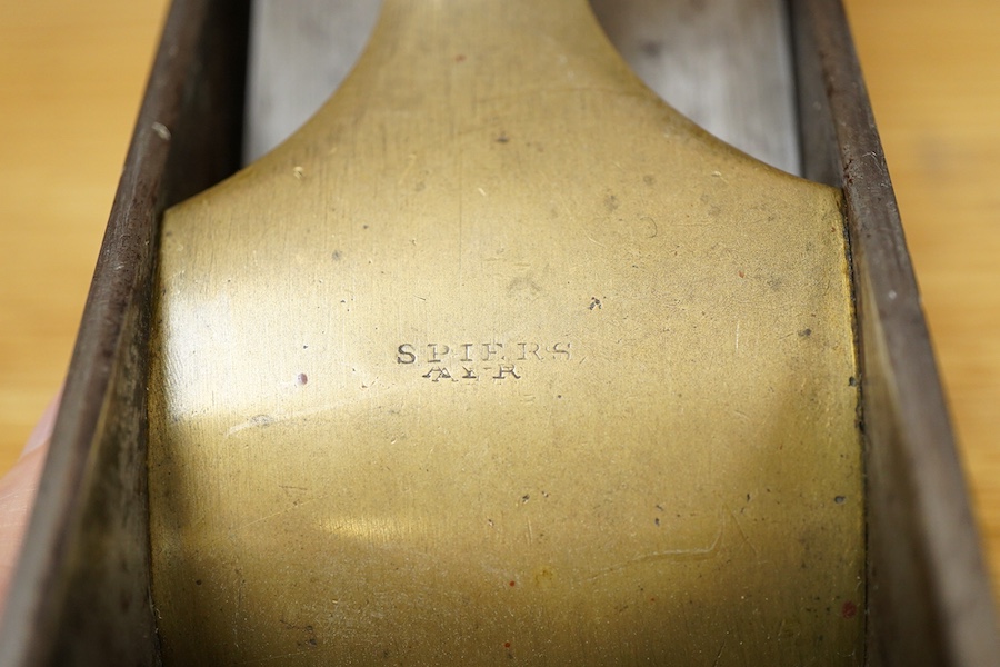 Lot 2325 , A Spiers dovetailed mitre plane with brass lever cap and rosewood infill, 8 1/2”, fitted with an iron by Ward