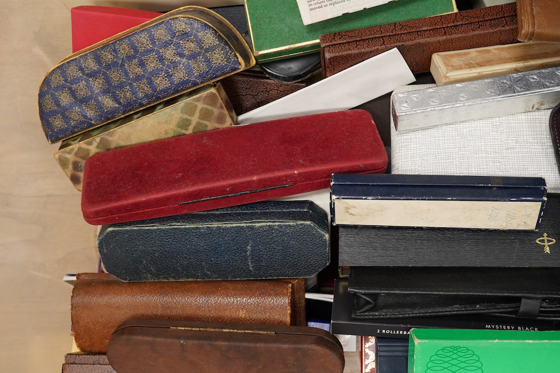 A large collection of fountain pen boxes and cases including: Montblanc, Parker, etc.