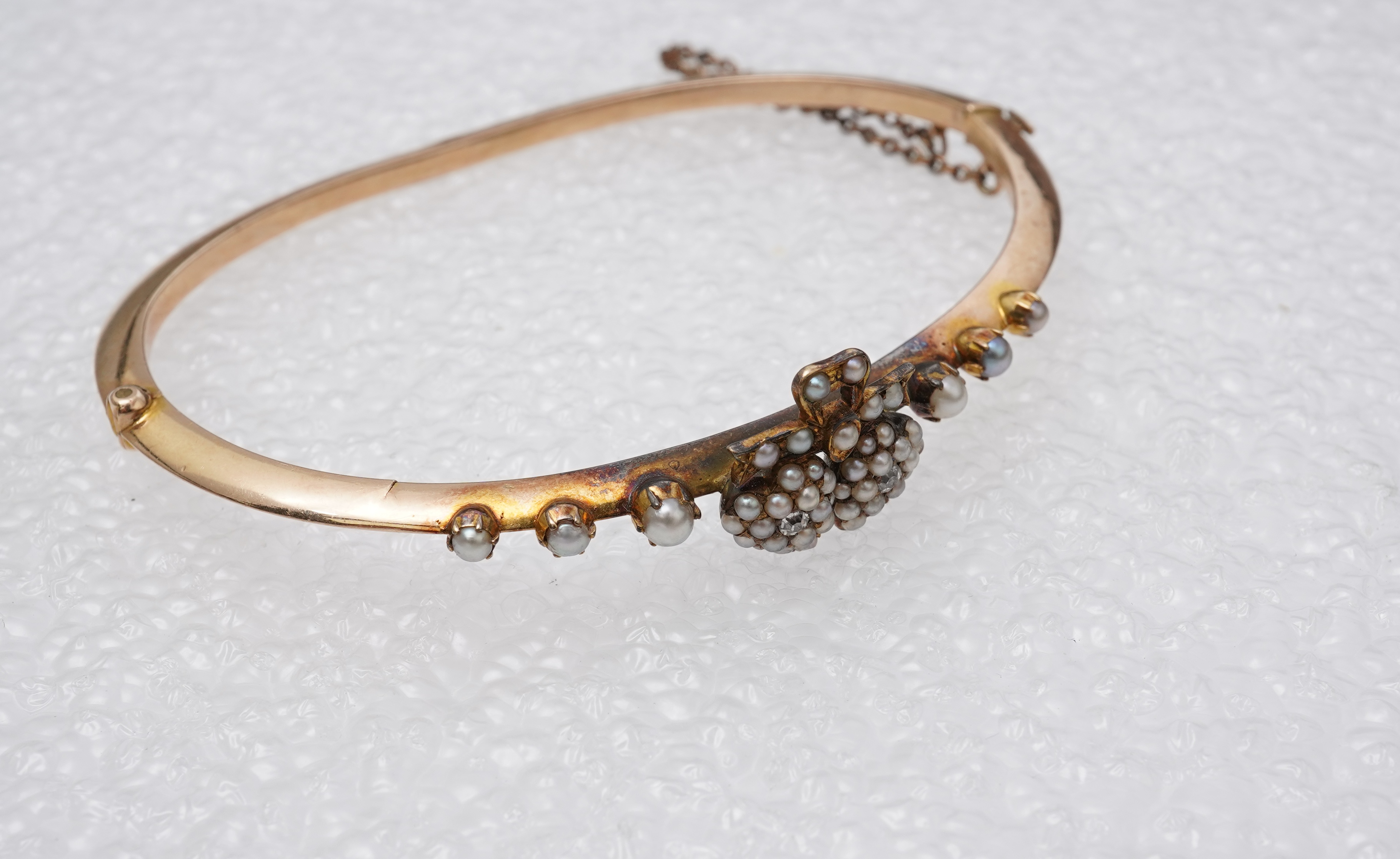 An Edwardian seed pearl and diamond bangle, early 20th century