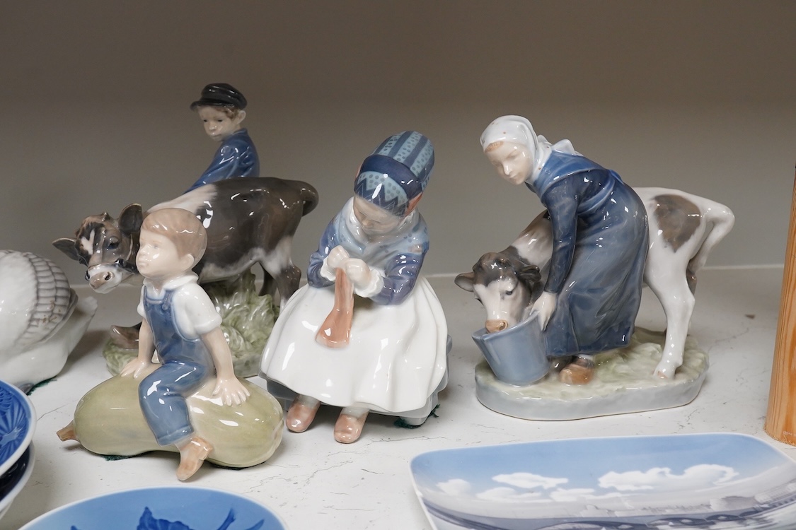 A collection of Royal Copenhagen and Bing and Grondahl figures and plates, tallest 19cm