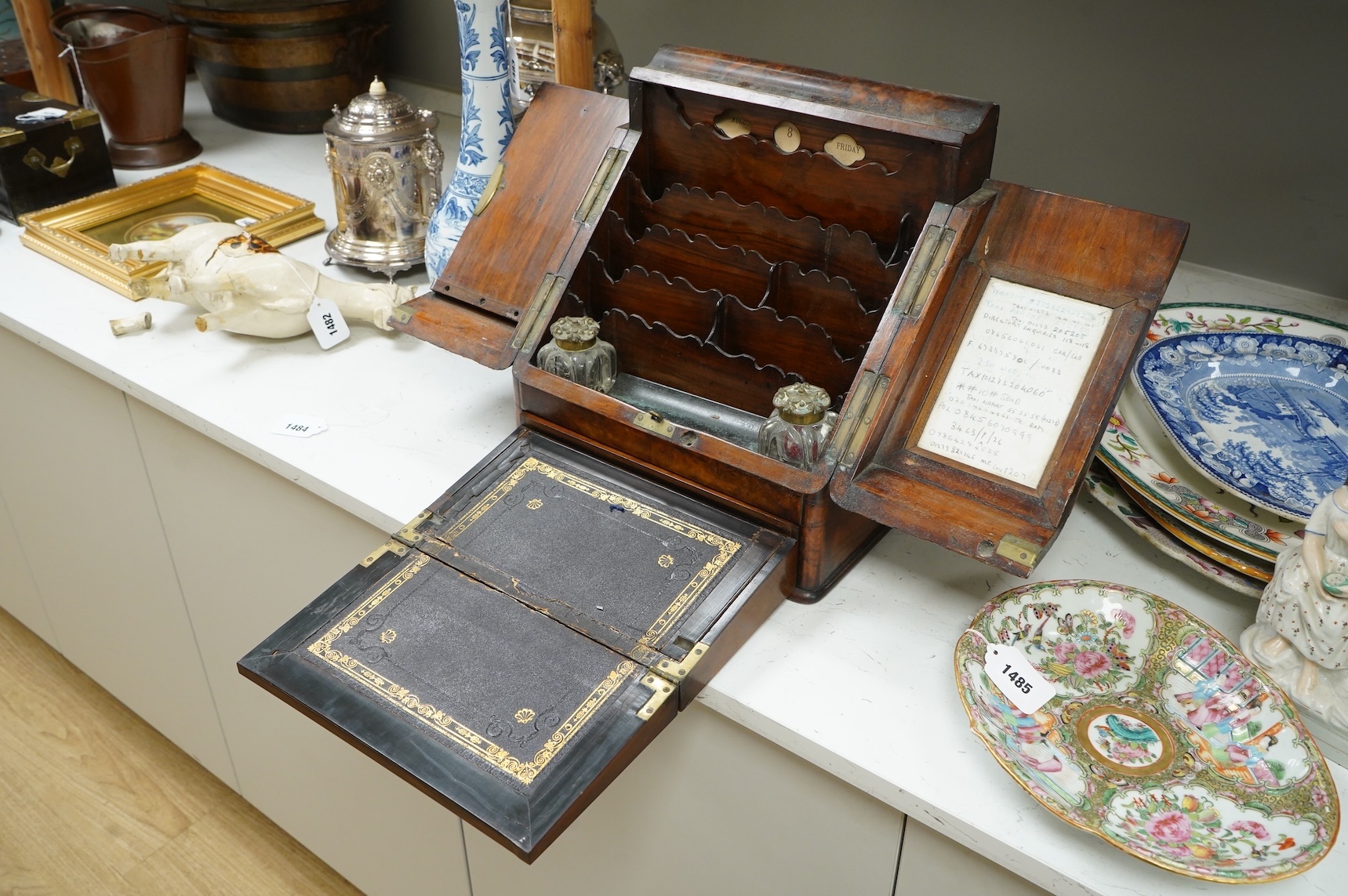 Lot 1484 , A Victorian burr wood stationary casket with calendar and two glass ink wells, 35cm high
