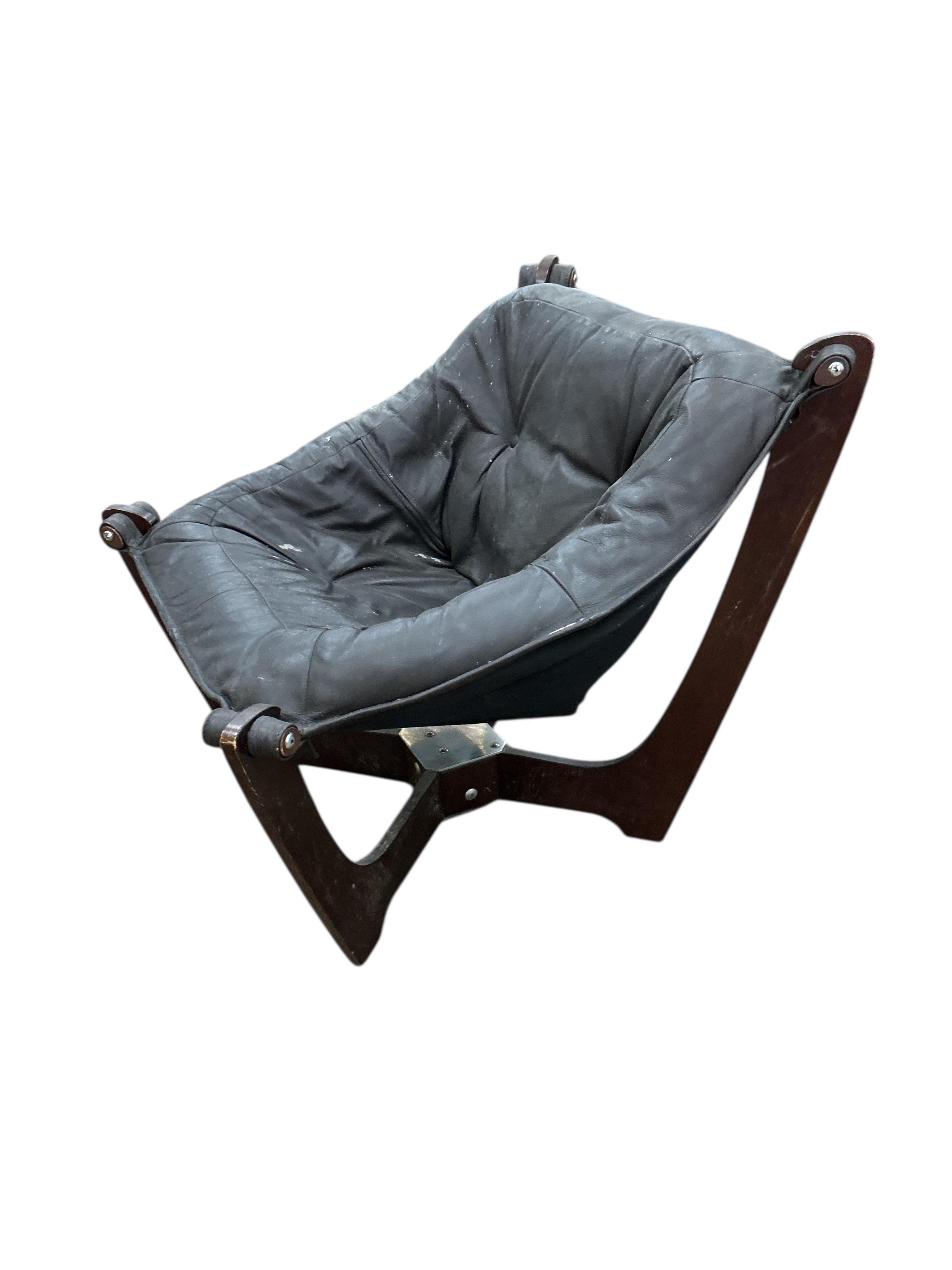 In the style of Odd Knutson, a Luna type lounge chair, width 70cm, depth 80cm, height 70cm