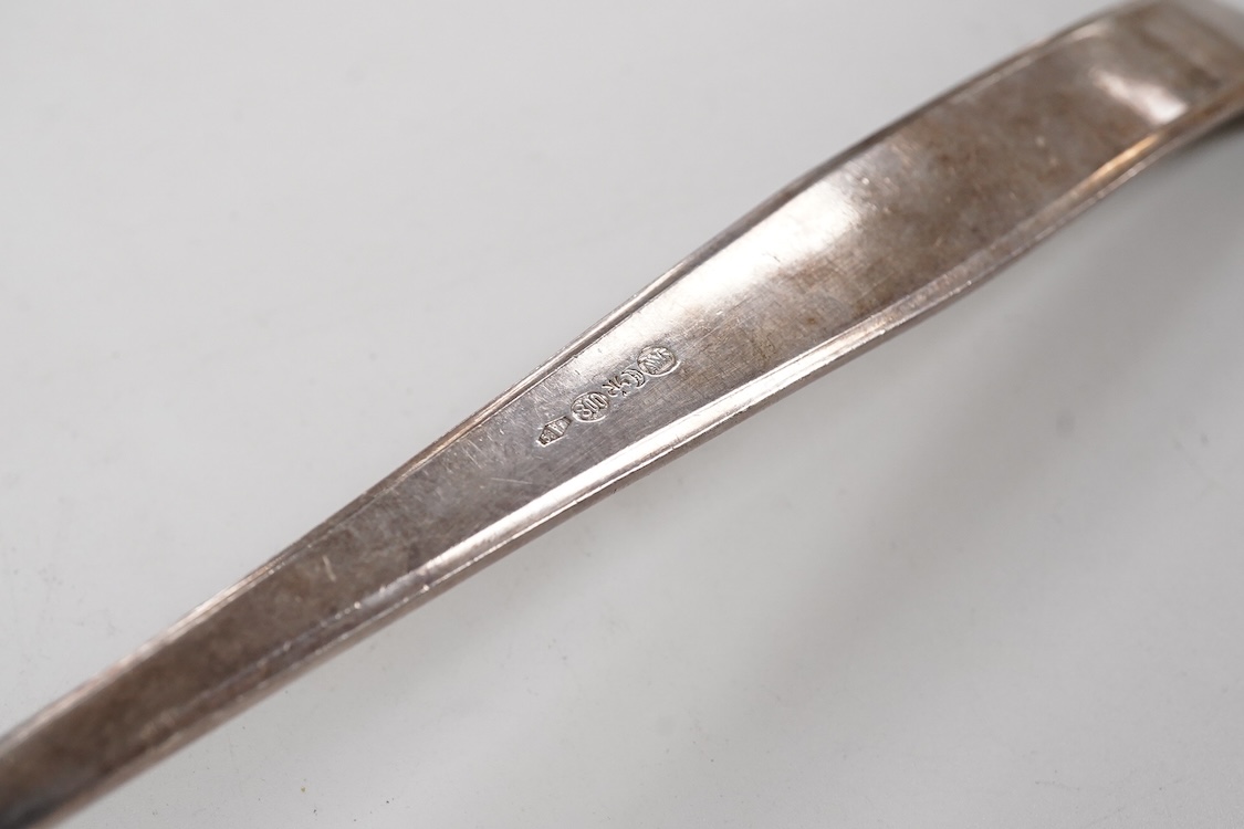 A mid 20th century Italian 800 standard white metal soup ladle, 31.8cm, 6.8oz.