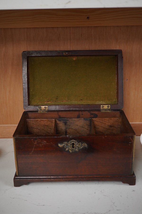 A George III mahogany and brass mounted tea caddy, 25cm wide x 16 cm high