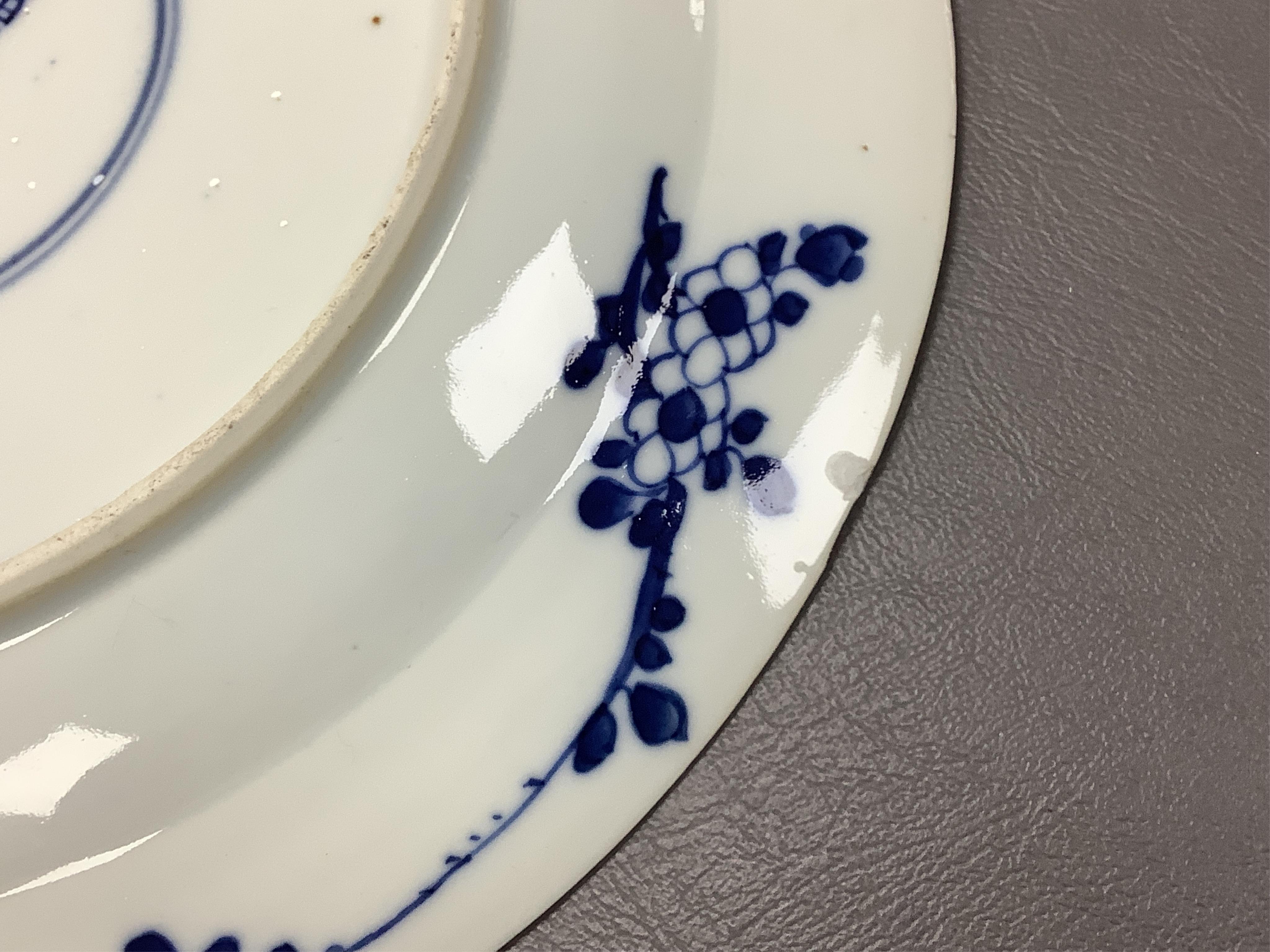Lot 387 , A 19th century Chinese blue and white plate decorated with a flower basket, apocryphal Kangxi four character mark to the base, 25cm in diameter