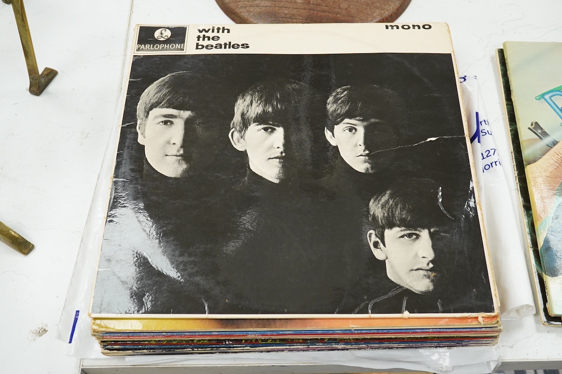 Fourteen The Beatles related LP record albums, including; Rubber Soul, The Beatles at the Hollywood Bowl, With The Beatles, Beatles For Sale, Sgt. Pepper, Revolver, McCartney II, Wings Over America, the Concert for Bangladesh box set, etc.