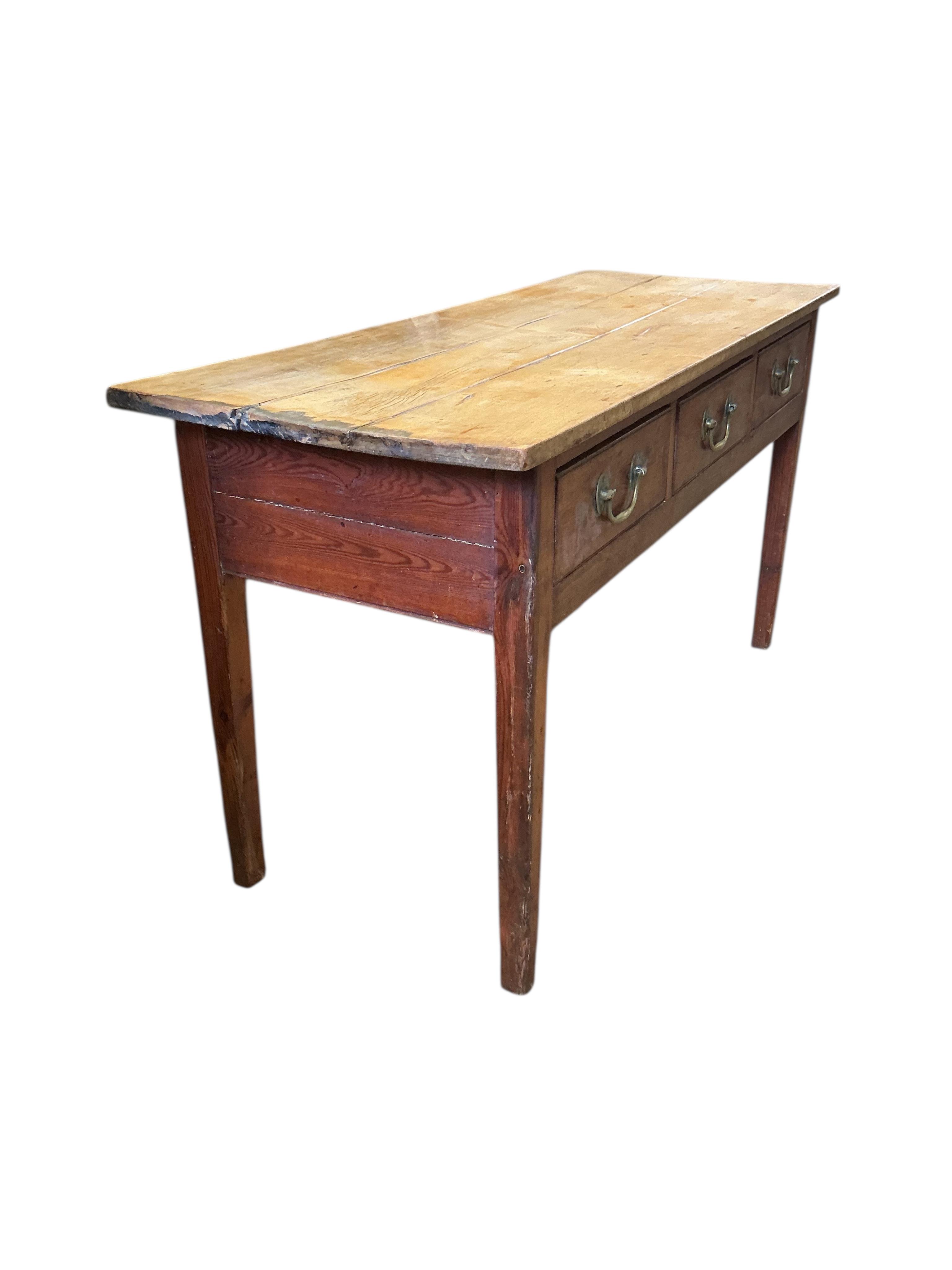 Lot 1106 , An early 19th century pine and fruitwood three drawer serving table, width 137cm, depth 54cm, height 75cm