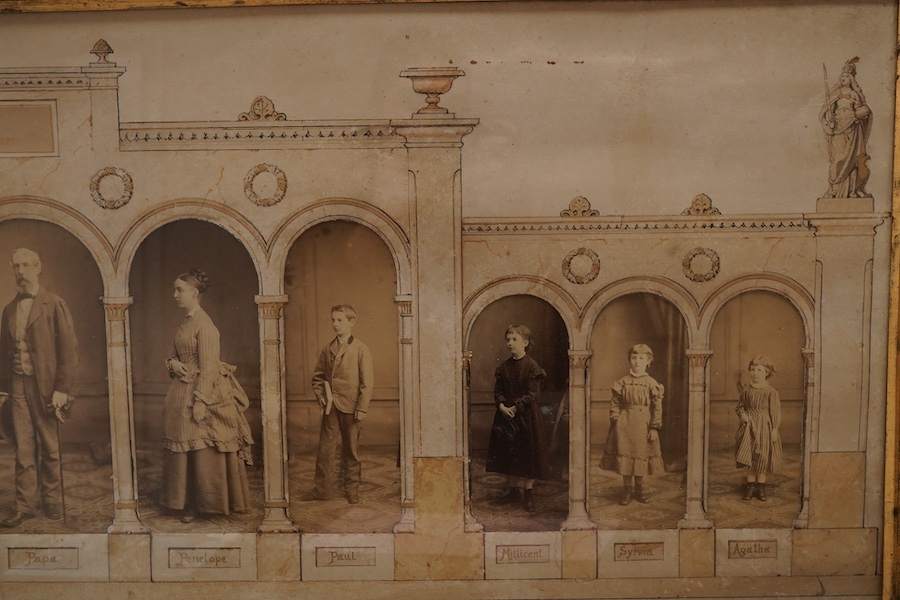 Lot 1391 , Roedean School interest: A Victorian photograph of the Lawrence family, founders of Roedean School for girls, within frame 39.5cm x 120cm