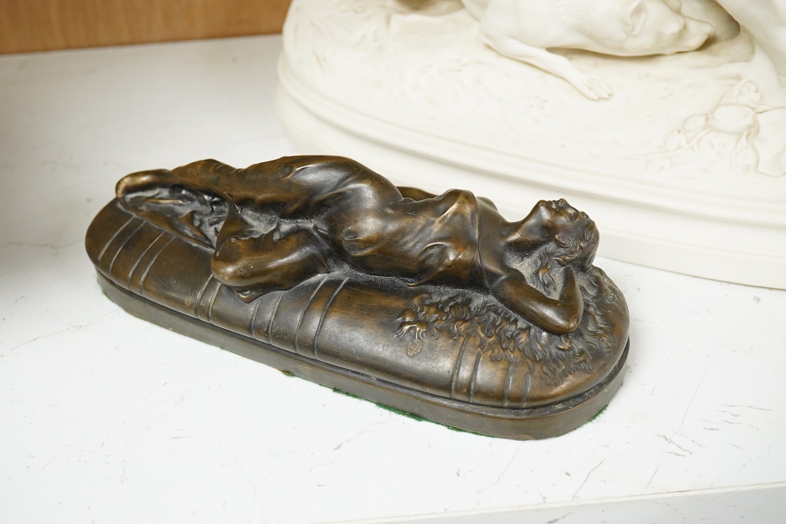 A spelter bust of General Gordon Pasha, and a bronze resin reclining female after Poullain, the bust 32cm