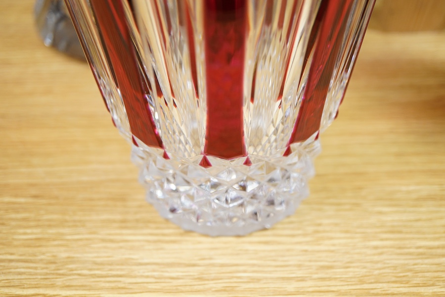 Two Val St. Lambert heavy cut ruby overlaid glass vases, largest 30cm high