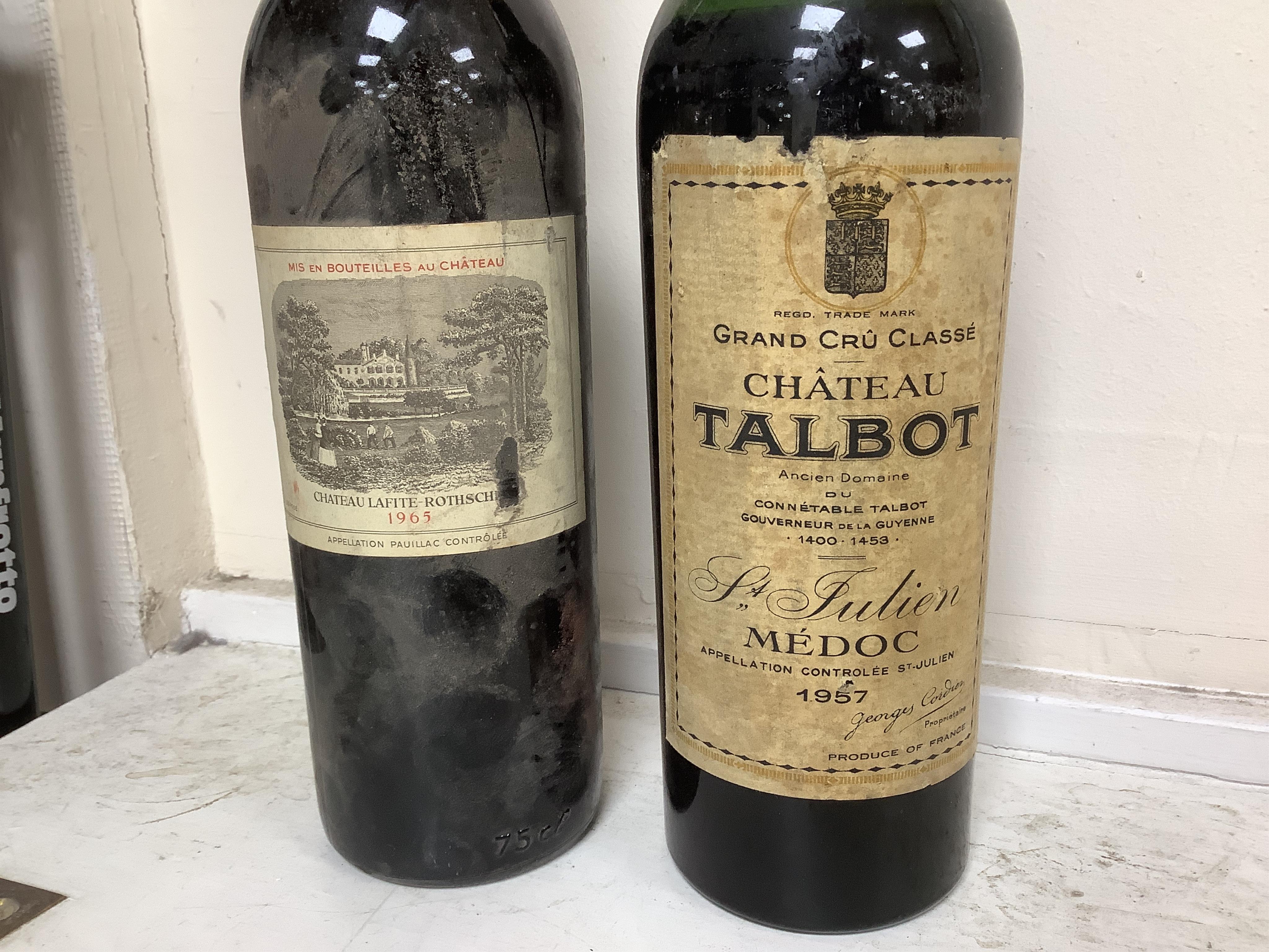 A bottle of Chateau Lafite Rothschild 1965 and a Chateau Talbot Medoc 1957