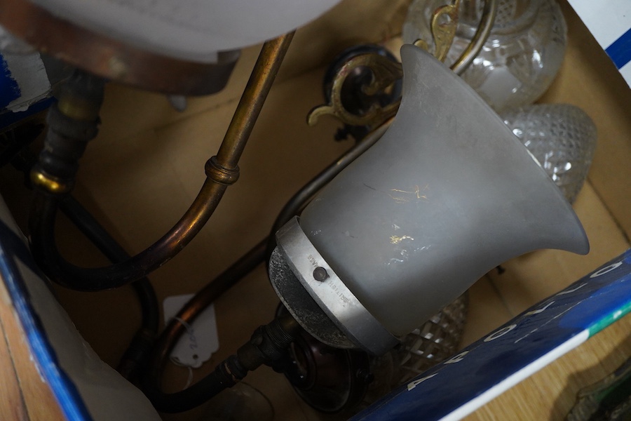 Lot 420 , Five glass wall lights to include three cut glass shades and a frosted glass etched example