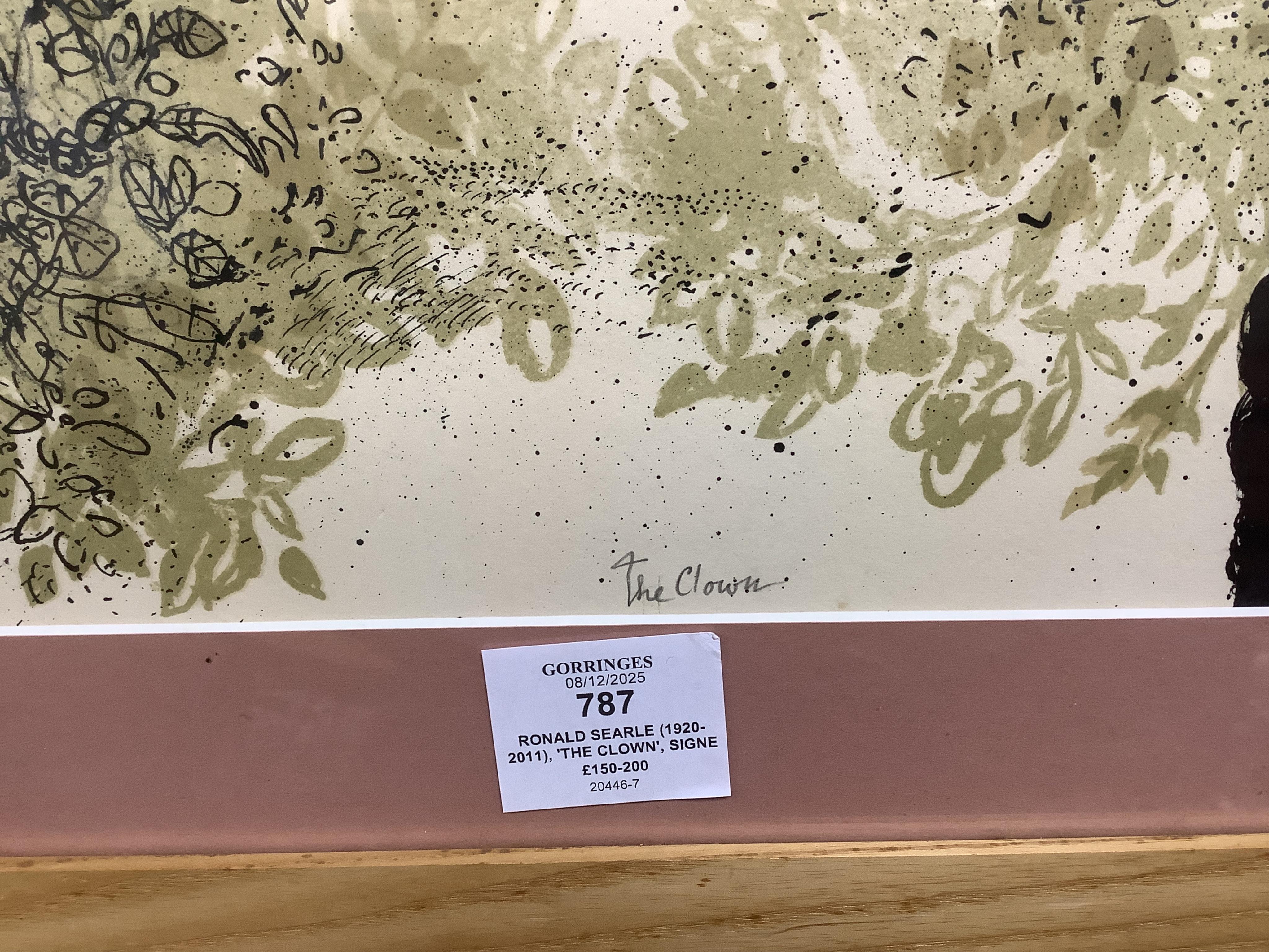 Lot 787 , Ronald Searle (1920-2011), ‘The Clown’, signed in pencil, limited edition 92/99, Michel Casse, Litho-Paris stamped, colour lithograph, 64 x 49cm