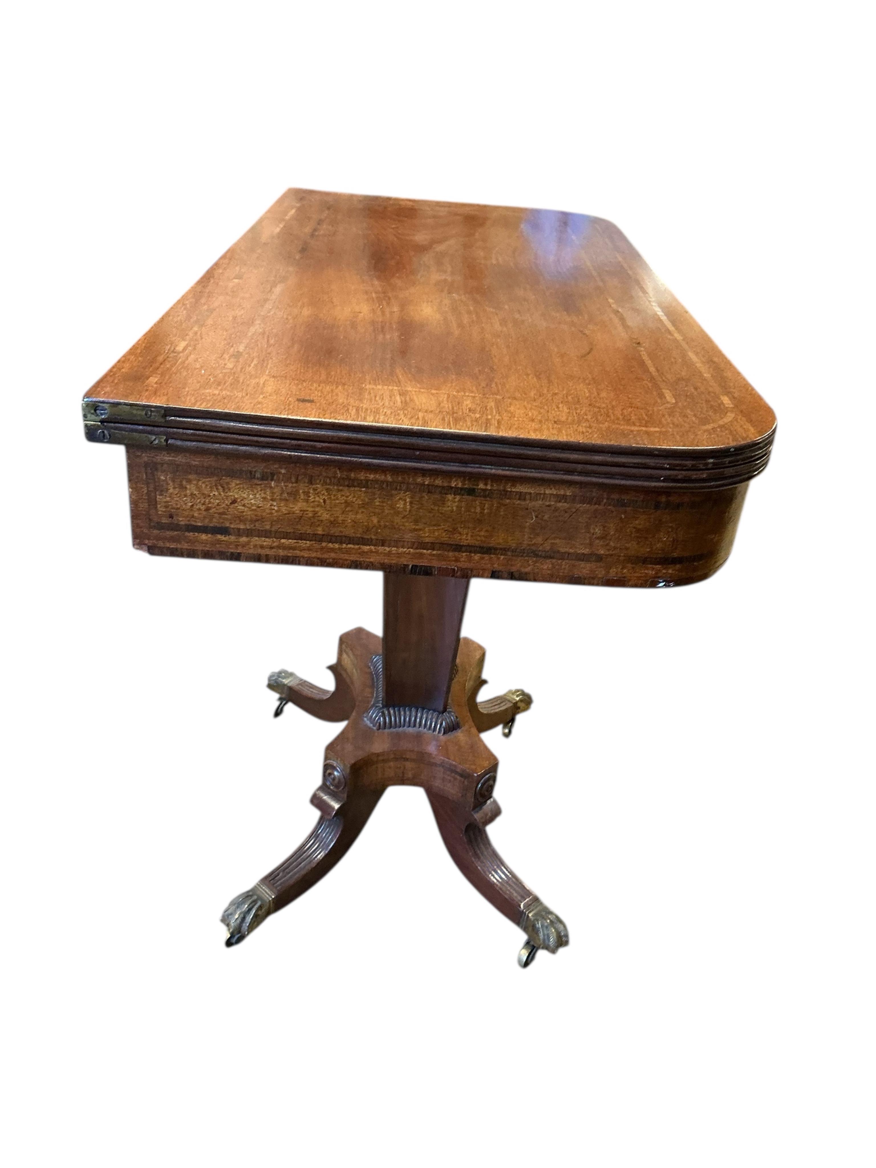 Lot 1047 , A Regency banded mahogany rectangular folding tea table, width 91cm, depth 45cm, height 75cm