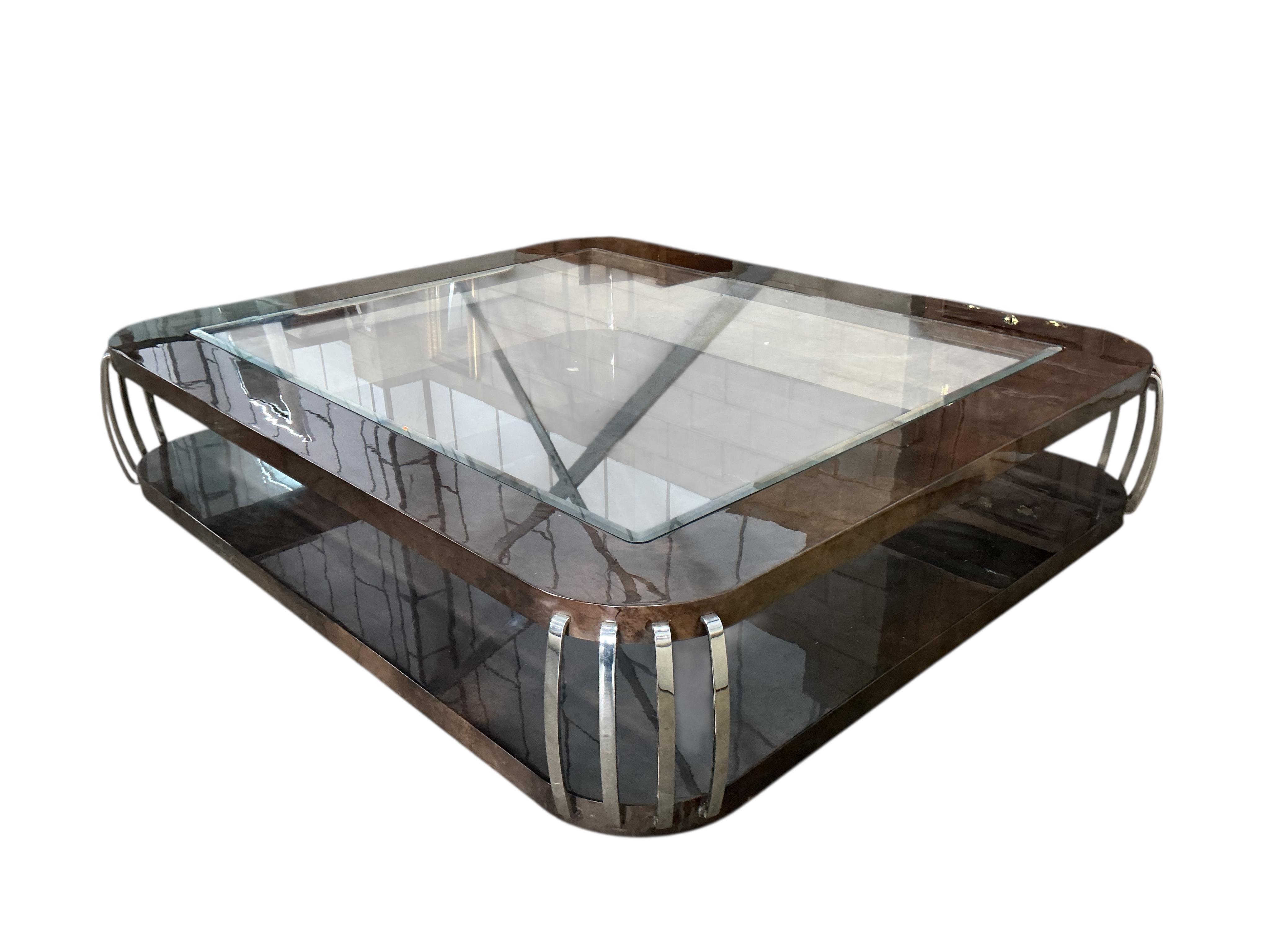 Lot 1093 , Sally Sirkin Lewis for J Robert Scott, a large rectangular Art Deco style lacquer and chrome coffee table, width 220cm, depth 190cm, height 37cm