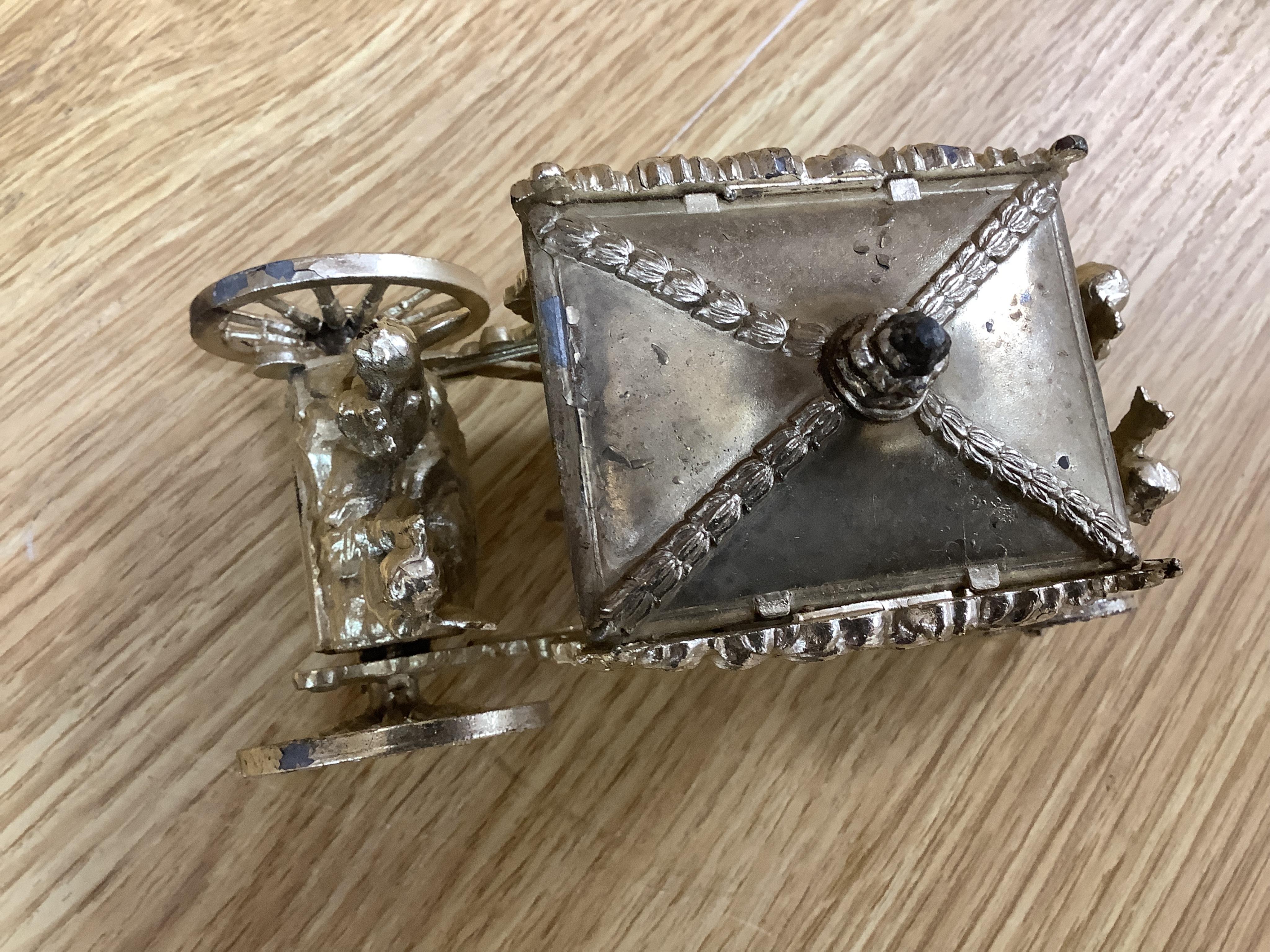 Single seated figure in coach; flakes and wear to gilt finish; otherwise fair; box fair to good. Boxed Coronation Chair finials detached.