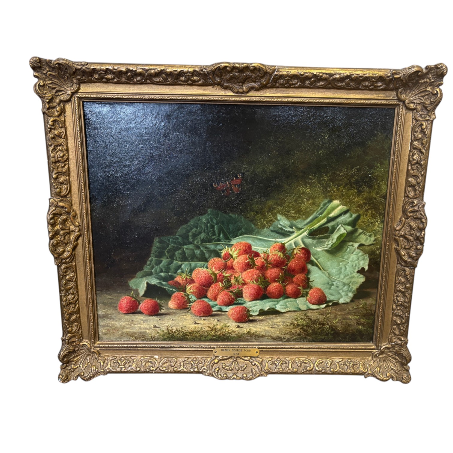 Lot 178 , Henry George Todd, 1847-1898, Still life of strawberries and cabbage leaf