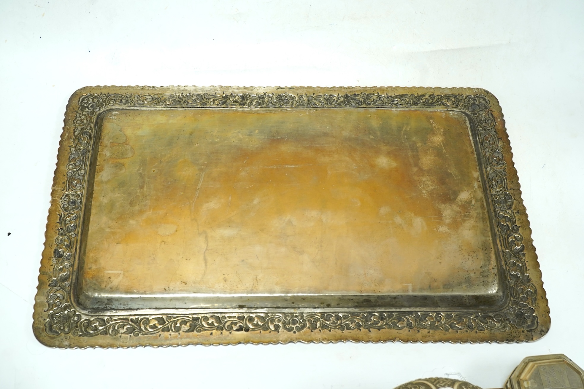 Lot 1845 , An Indonesian Yogya 800 standard white metal rectangular tray, stamped ZN800 Delux, 44.2cm, 40oz.