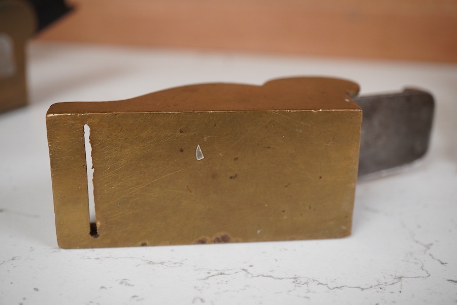 Lot 1013 , A Spiers chariot plane with gunmetal body, original 1 1/4” iron, stamped ‘Spiers, Aye’. to the lever cap, the sole 8.5cm long