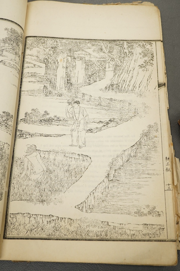 Lot 438 , A Chinese text book, Imperial farming and silk production, and a smaller Japanese text book, 1874, brocade designs, largest 28x18cm