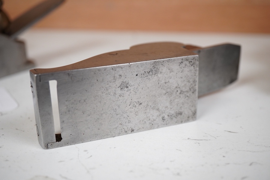 Lot 1015 , A Preston chariot plane with steel body, fitted with a 1 1/8” iron, stamped ‘E. Preston, etc.’ to the back, the sole 8cm long