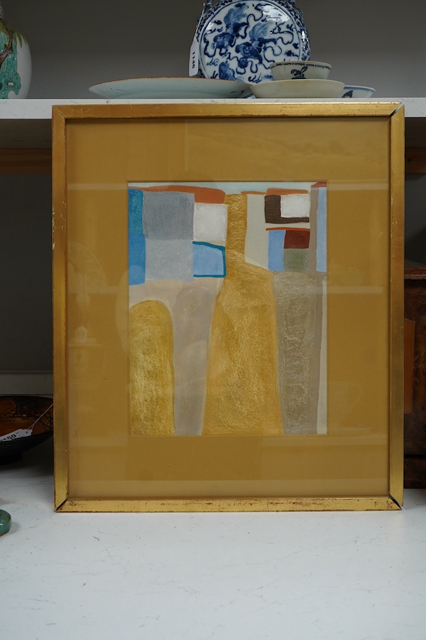 Abstract composition, unsigned, possibly by Philip Hughes, mixed media and gouache, 29 x 22cm